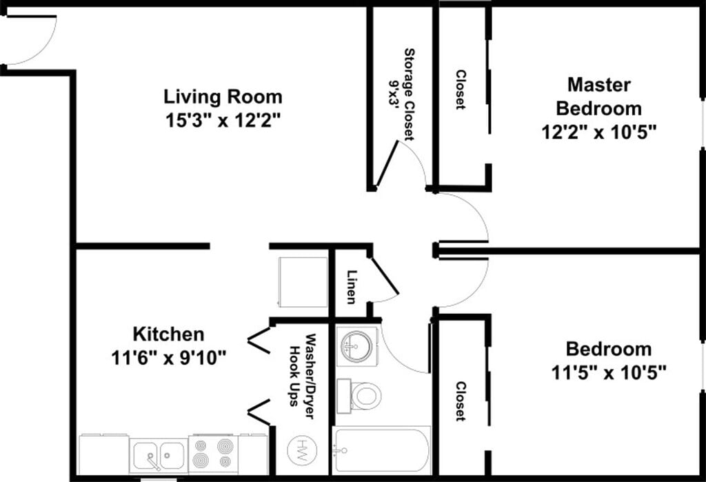 Unidad de apartamento: 201-GModelo de apartamento: 2BR/1.0BA$1,0952 Dormitorios, 1 Baño, 800 sq ftDisponible Ahora![]()