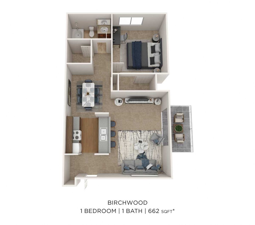 1 Dormitorio, 1 Baño, 662 pies²Disponible Dec 1Galería del Modelo
