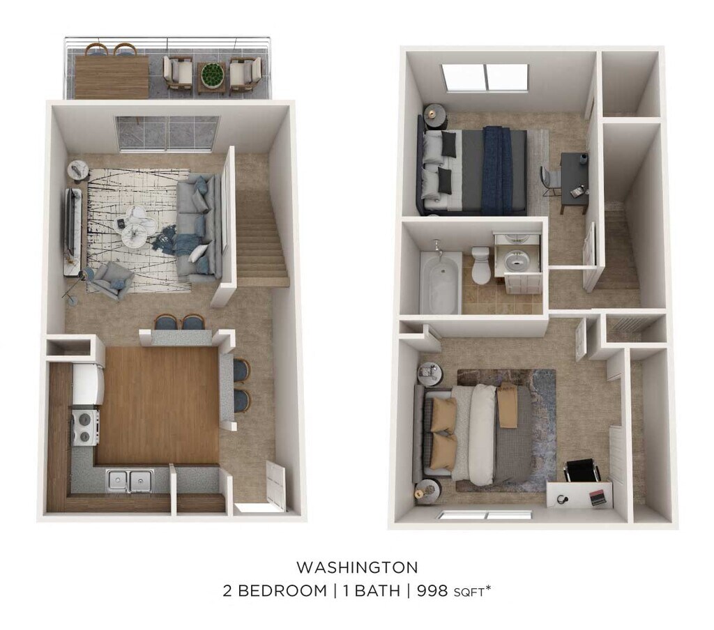 2 Dormitorios, 1.5 Baños, 1062 pies²Disponible AhoraEl más grandeEsta opción tiene las unidades más grandes para este modeloGalería del Modelo