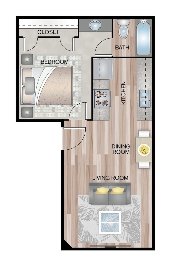 1 Dormitorio, 1 Baño, 505 pies²Disponible AhoraGalería del Modelo