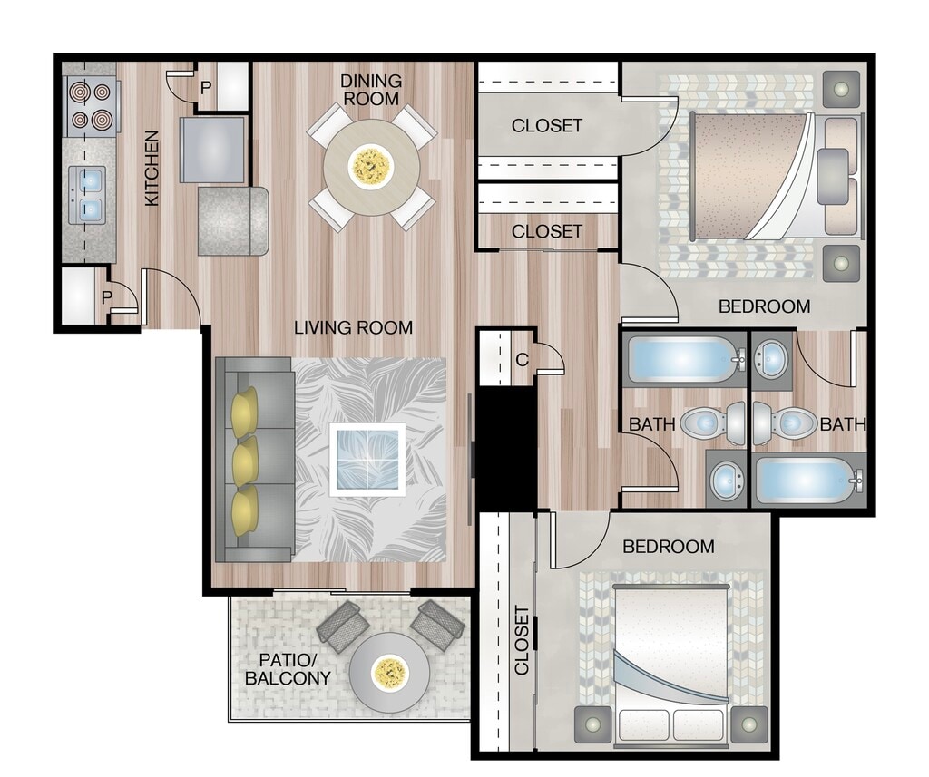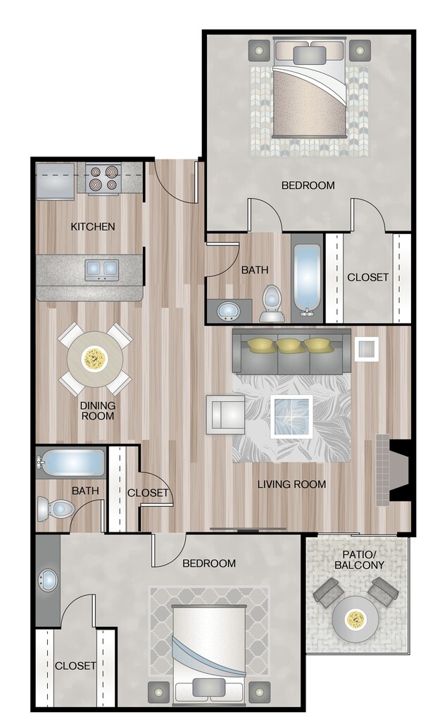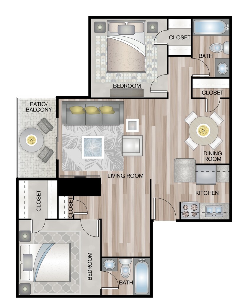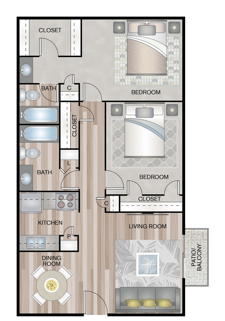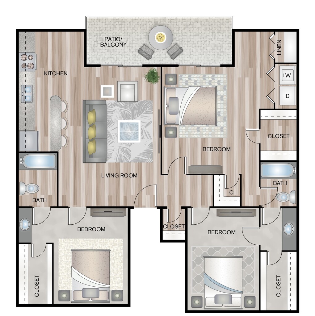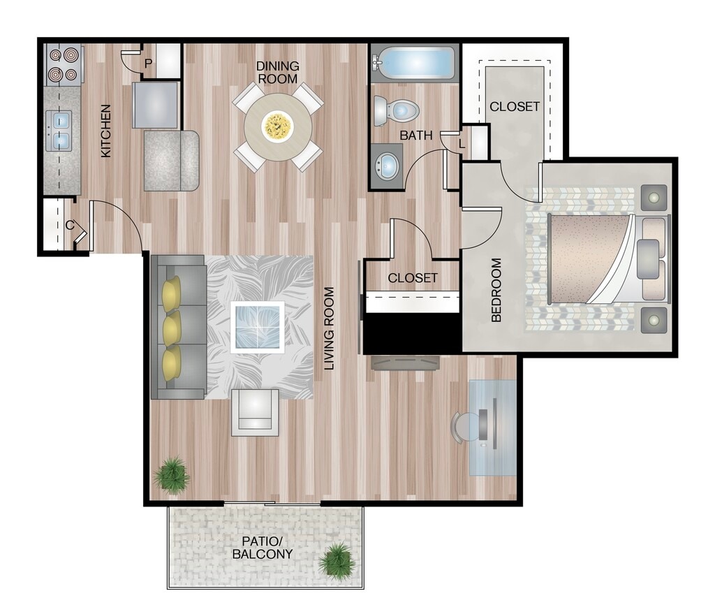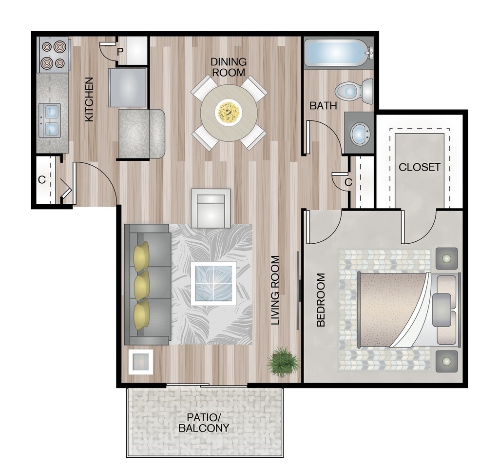 Modelo de apartamento: A7Desde $7771 Dormitorio, 1 Baño, 700 sq ftDisponible Ahora![]()