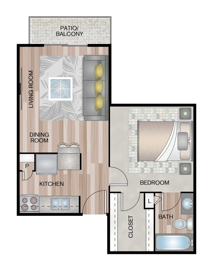 Modelo de apartamento: A1Desde $7721 Dormitorio, 1 Baño, 505 sq ftDisponible Ahora![]()