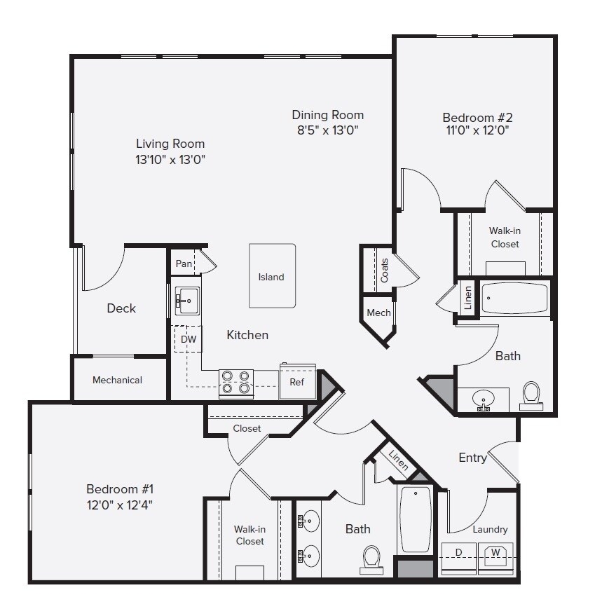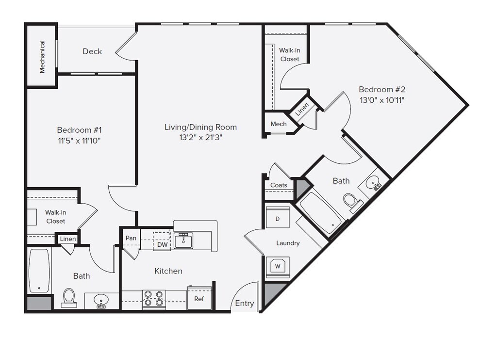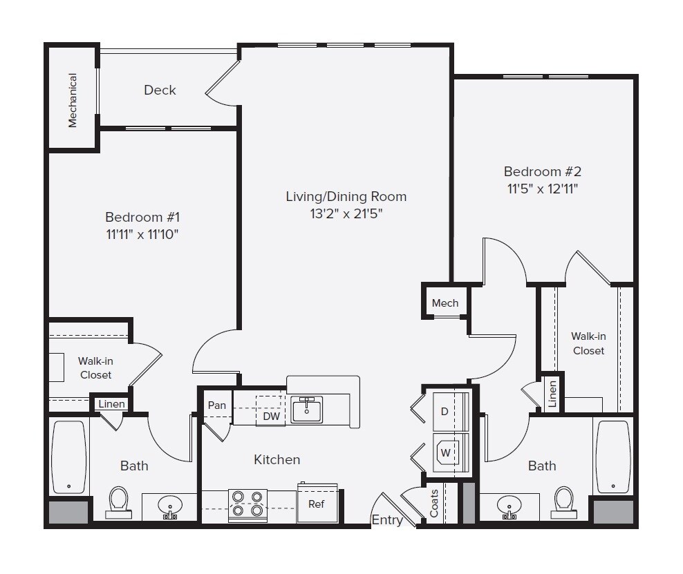 BF2-999 - Plano 1 Unidad de apartamento: 012-12214Modelo de apartamento: BF2-999$2,8202 Dormitorios, 2 Baños, 999 sq ftDisponible AhoraBF2L-1173