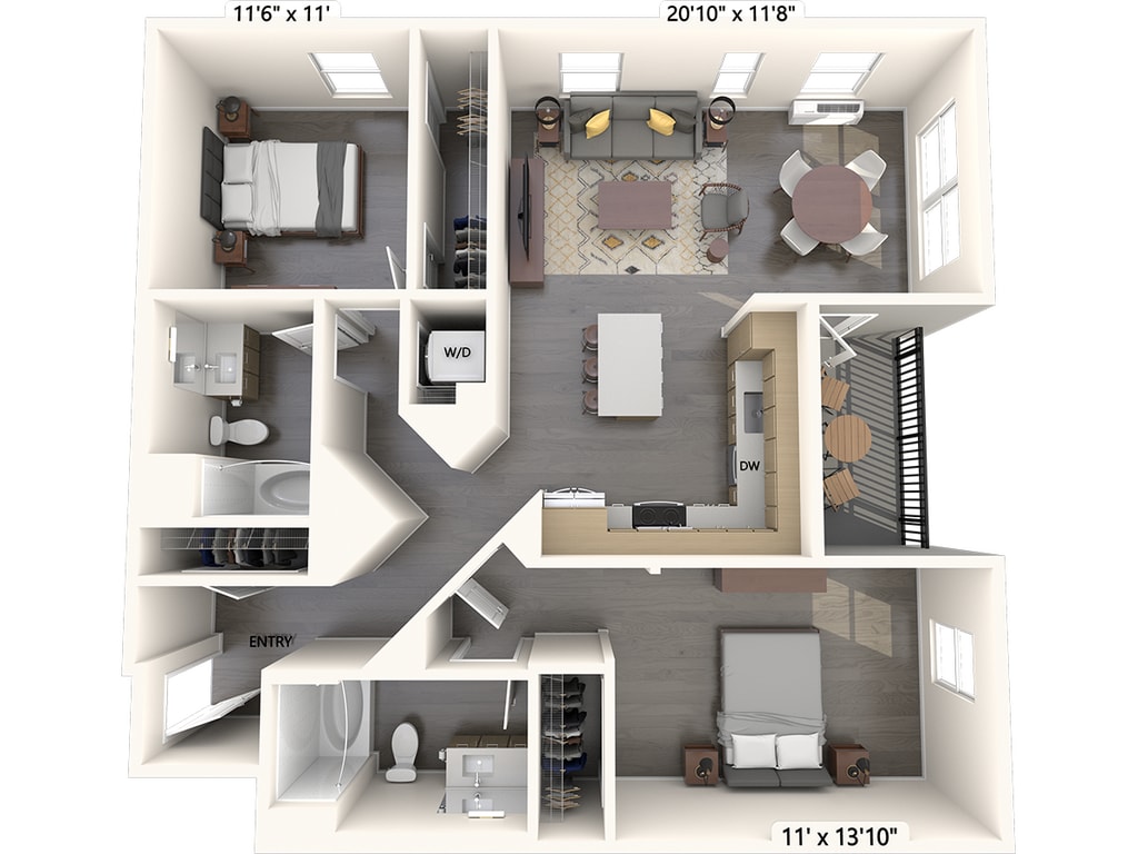 Modelo de apartamento: AM15-710-856sf-DIDesde $2,2351 Dormitorio, 1 Baño, 733 sq ftDisponible AhoraLos planos son representaciones artísticas. Todas las dimensiones son aproximadas. El producto y las especificaciones reales pueden variar en tamaño o detalle. No todas las características están disponibles en cada vivienda en alquiler. Por favor, consulta con un representante para obtener más detalles.