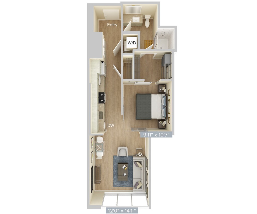 1 Dormitorio, 1 Baño, 797 pies²Disponible AhoraEl más grandeEsta opción tiene las unidades más grandes para este modeloGalería del Modelo