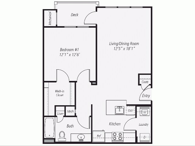 Modelo de apartamento: A21 Dormitorio, 1 Baño, 748 sq ftDisponible January 10, 2026![]()