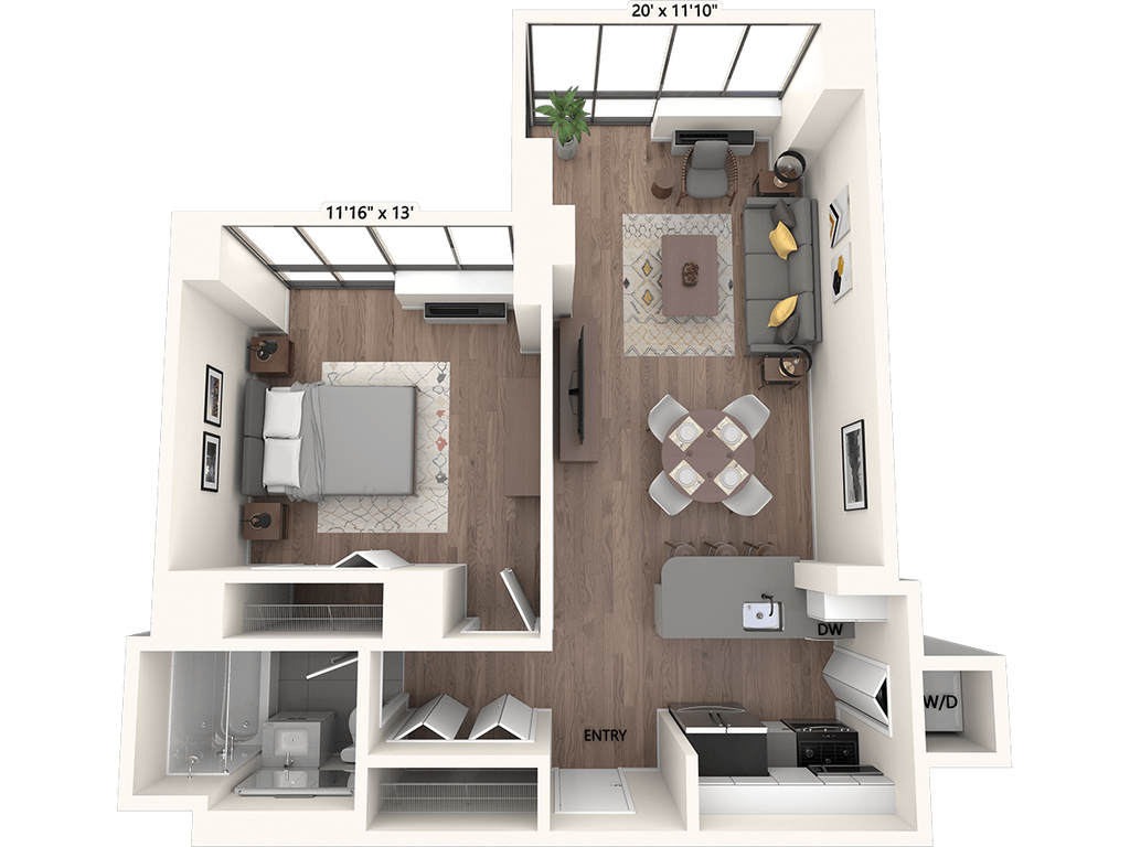 1 Dormitorio, 1 Baño, 723 pies²Disponible AhoraGalería del Modelo