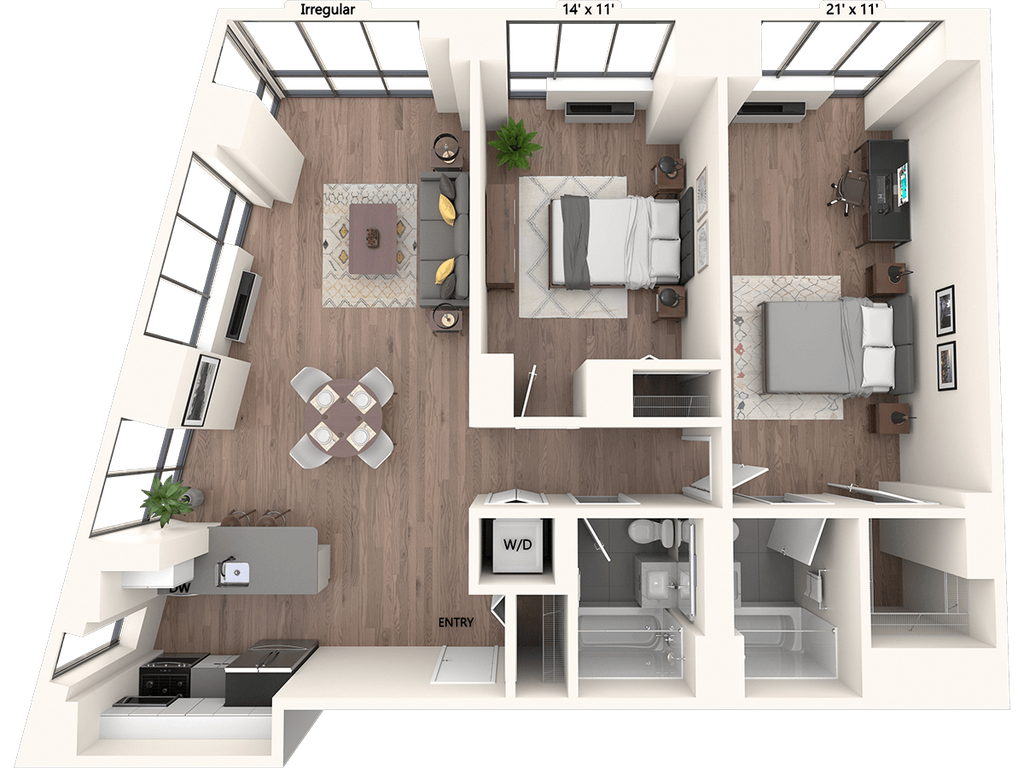 Modelo de apartamento: S2-201-567sqEstudio, 1 Baño, 561 sq ftDisponible November 20, 2025![]()