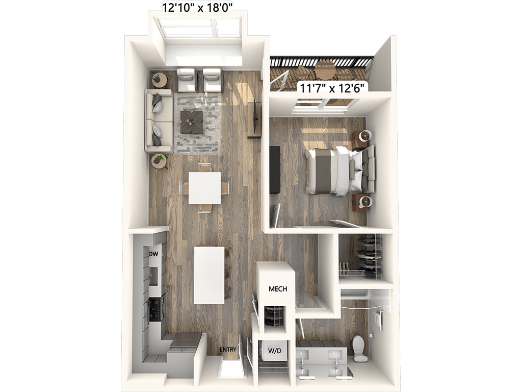 Modelo de apartamento: S1-612sf$3,135Estudio, 1 Baño, 612 sq ftDisponible June 17, 2026Los planos son representaciones artísticas. Todas las dimensiones son aproximadas. El producto y las especificaciones reales pueden variar en tamaño o detalle. No todas las características están disponibles en cada vivienda en alquiler. Por favor, consulta con un representante para obtener más detalles.
