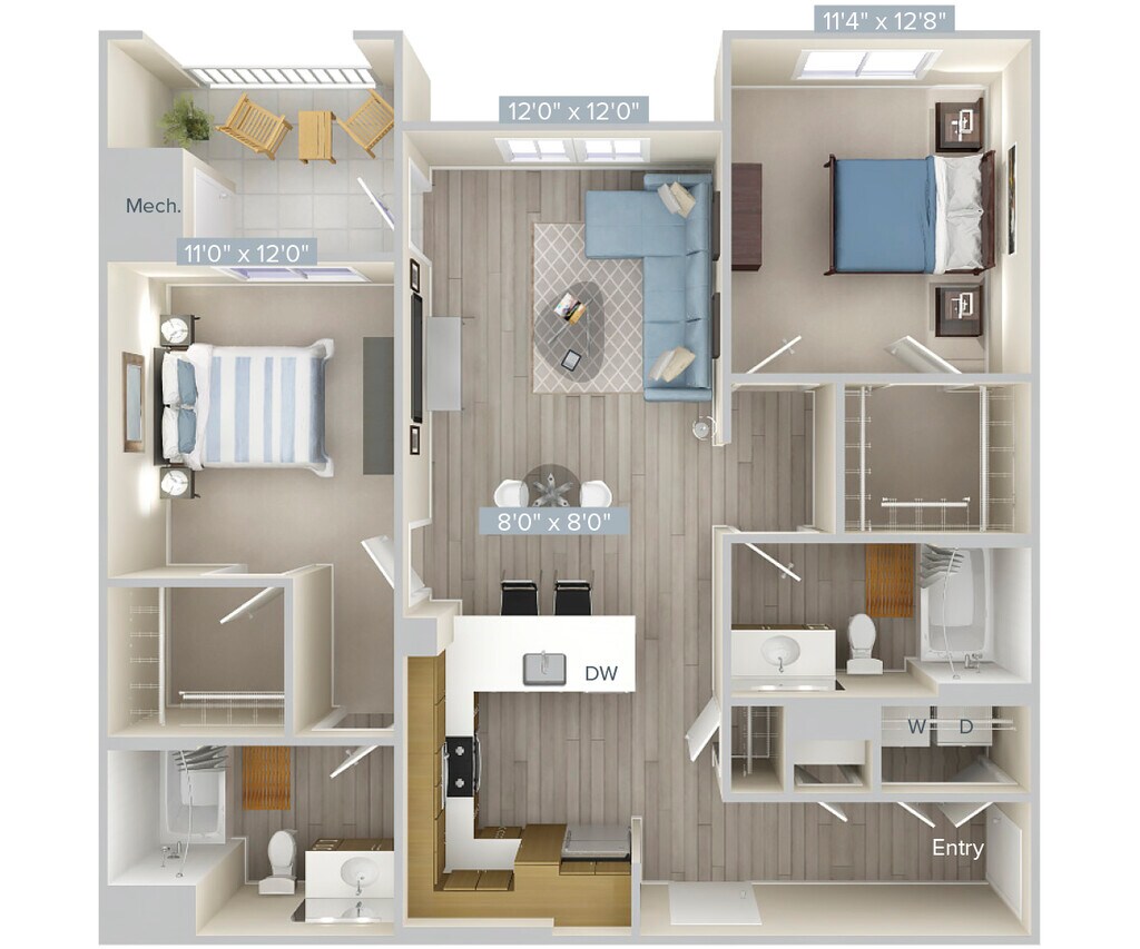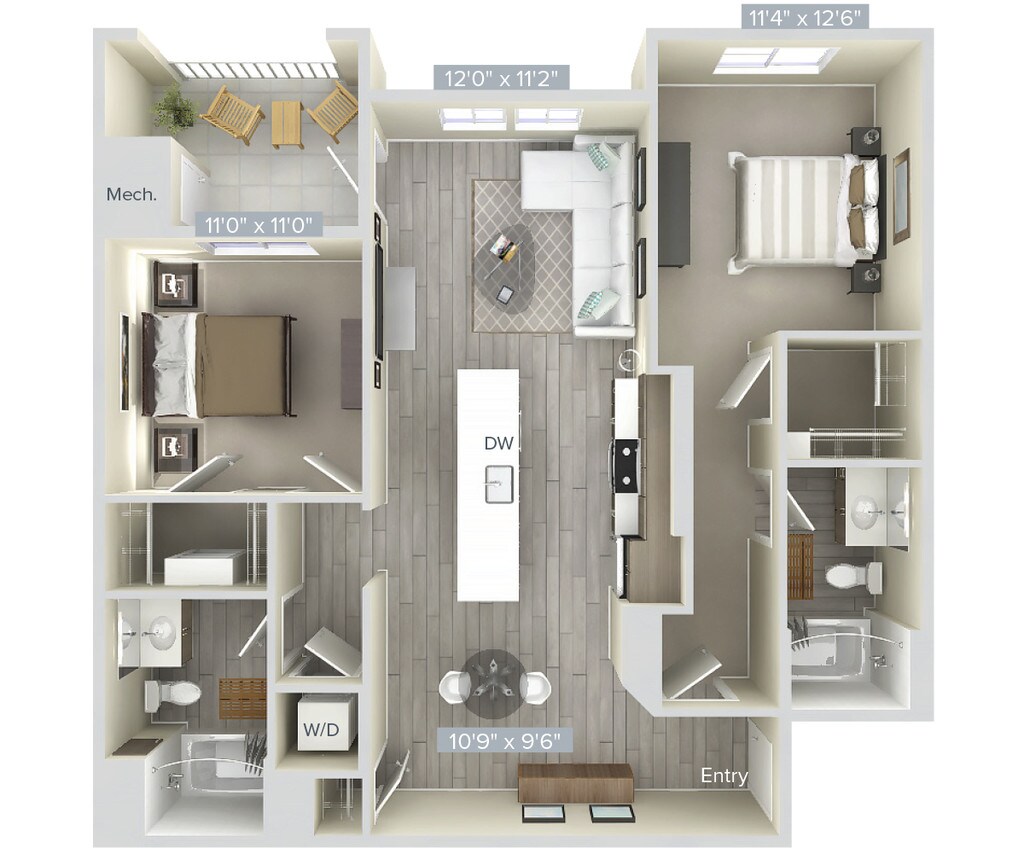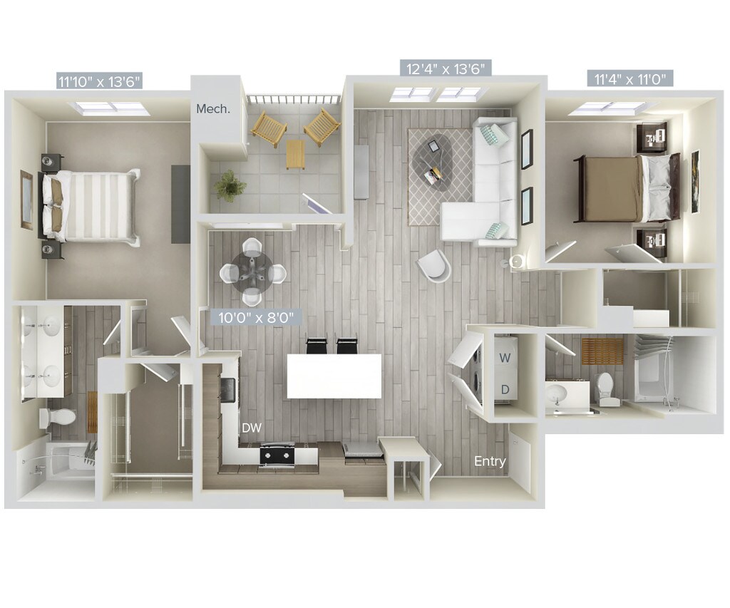 Modelo de apartamento: B2-1130-1$3,0452 Dormitorios, 2 Baños, 1130 sq ftDisponible Ahora![]()