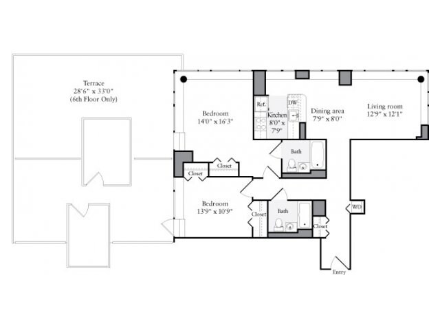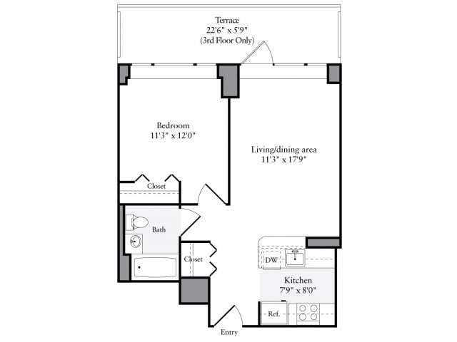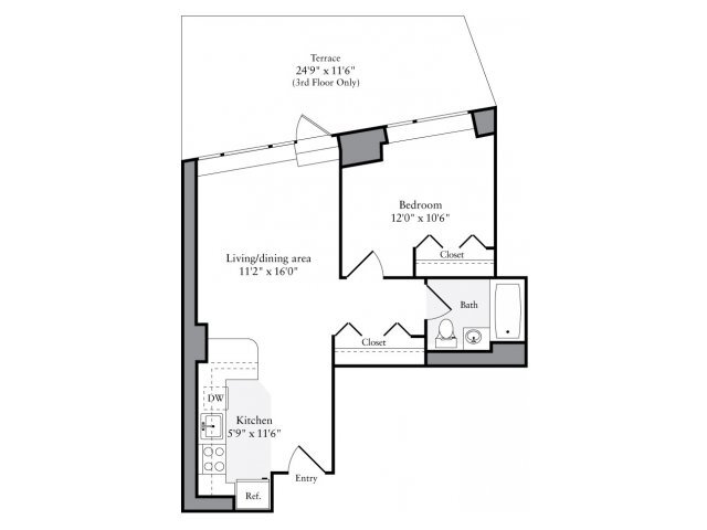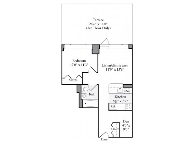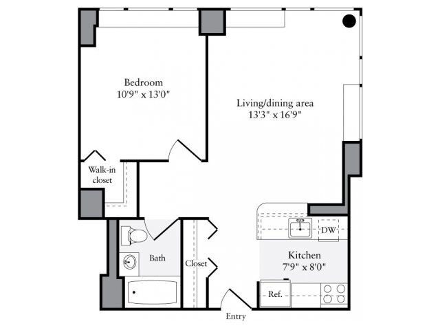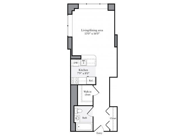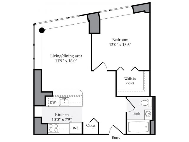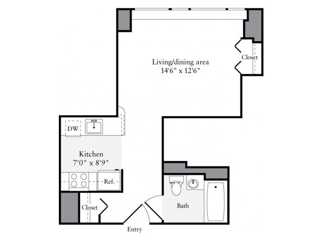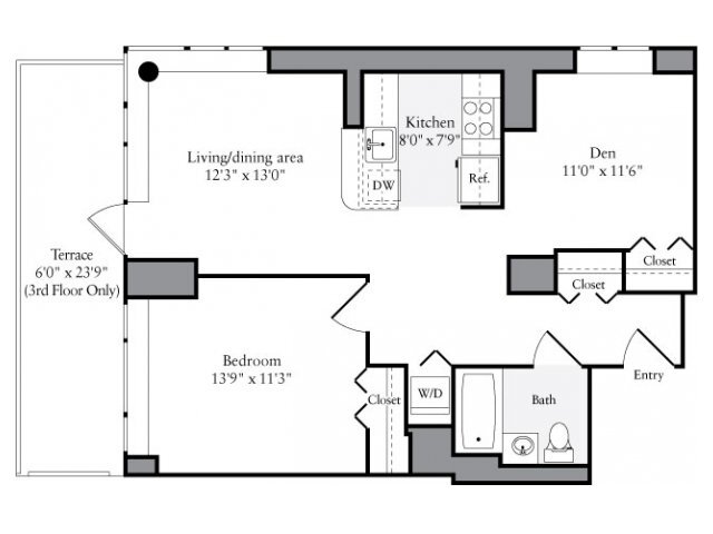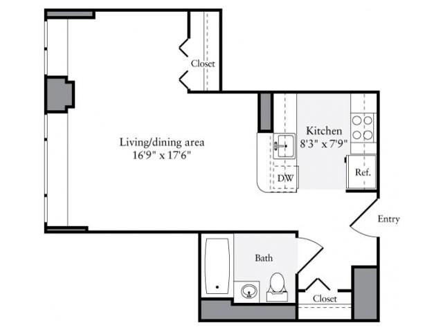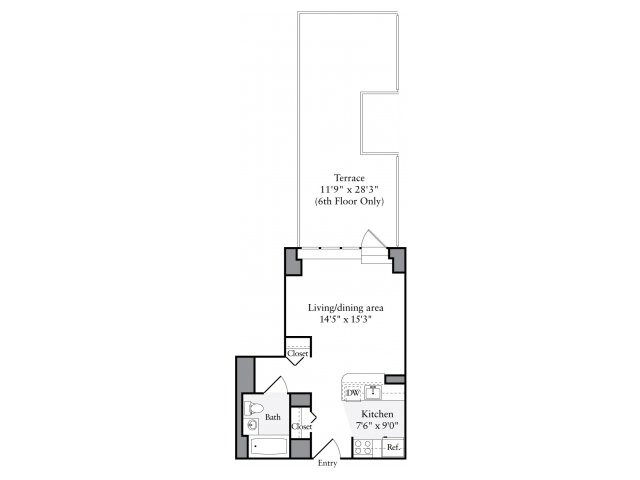 Modelo de apartamento: 426Estudio, 1 Baño, 426 sq ftDisponible December 1, 2025![]()