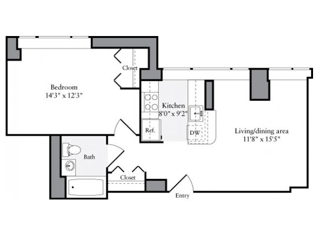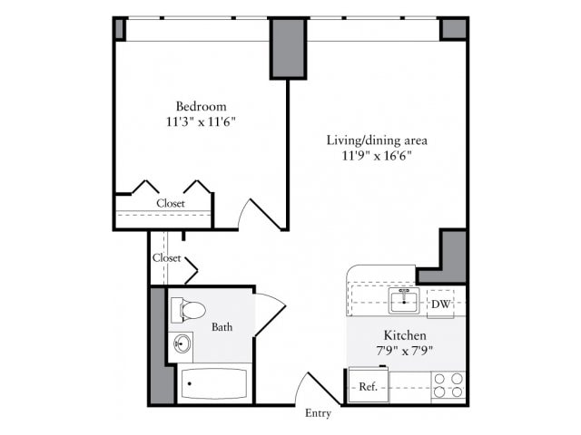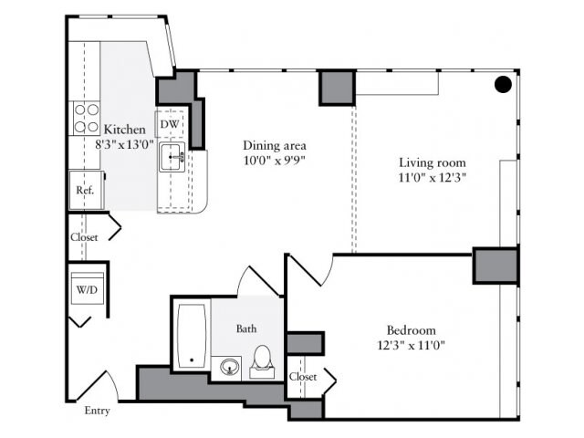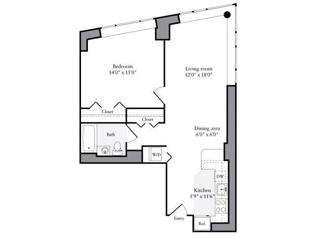 Modelo de apartamento: 5851 Dormitorio, 1 Baño, 585 sq ftDisponible Ahora![]()