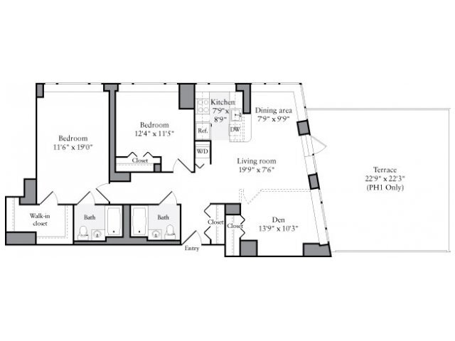 800 - Plano 1 Unidad de apartamento: 001-PH1LModelo de apartamento: 8001 Dormitorio, 1 Baño, 800 sq ftDisponible AhoraPlano: 602
