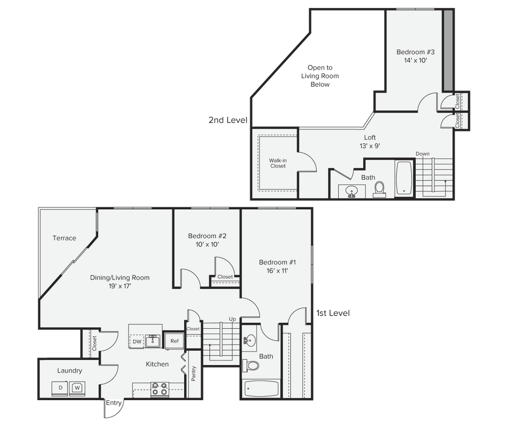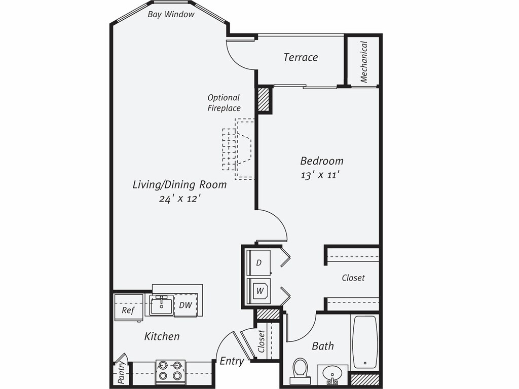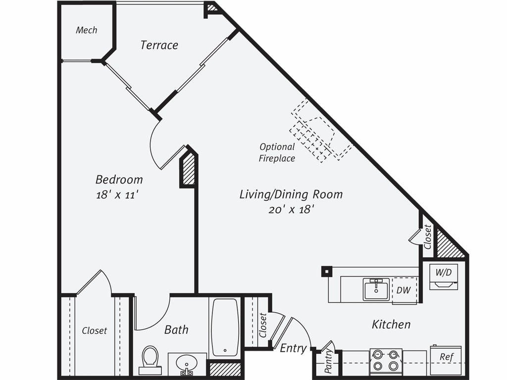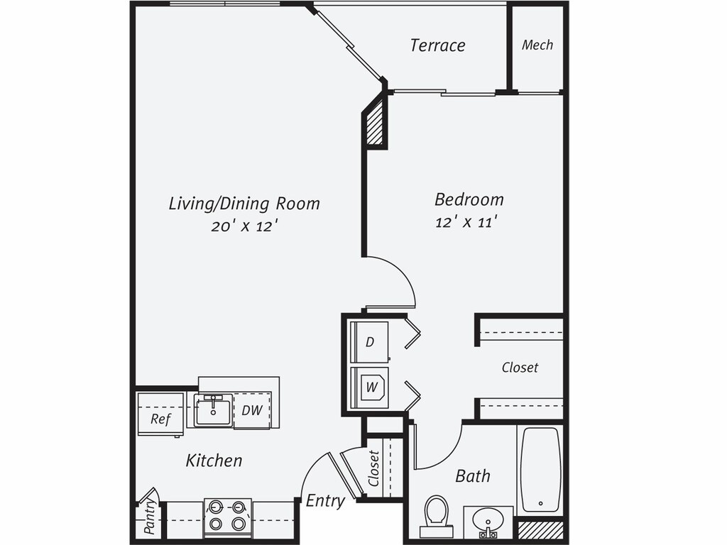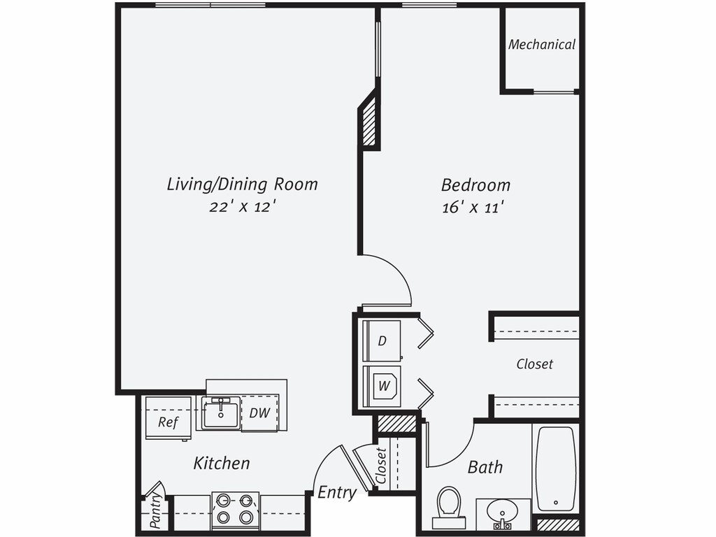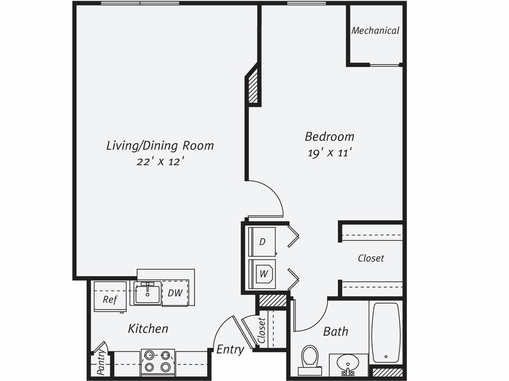 1 Dormitorio, 1 Baño, 805 pies²Disponible AhoraGalería del Modelo