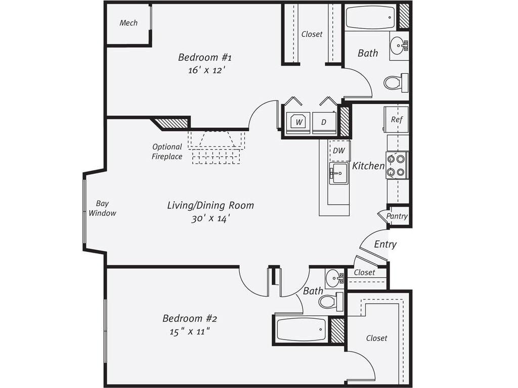 2 Dormitorios, 2 Baños, 1140 pies²Disponible AhoraGalería del Modelo