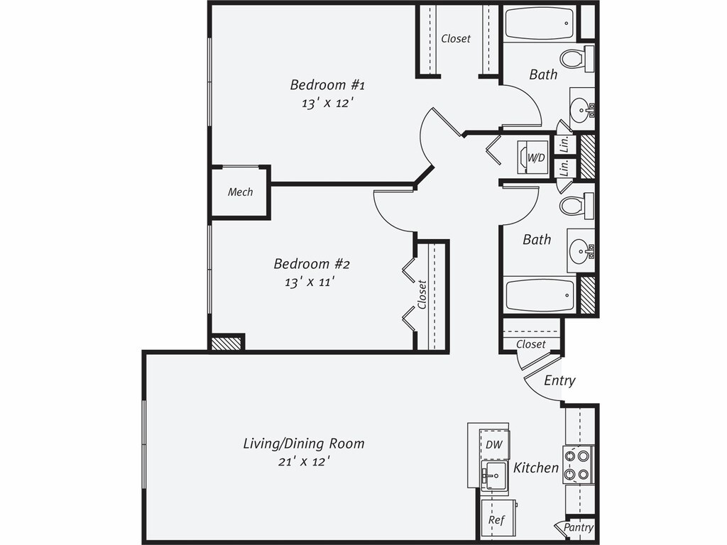 1 Dormitorio, 1 Baño, 832 pies²Disponible AhoraEl más grandeEsta opción tiene las unidades más grandes para este modeloGalería del Modelo