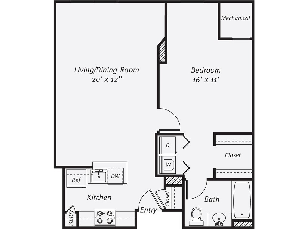 1 Dormitorio, 1 Baño, 818 pies²Disponible AhoraGalería del Modelo