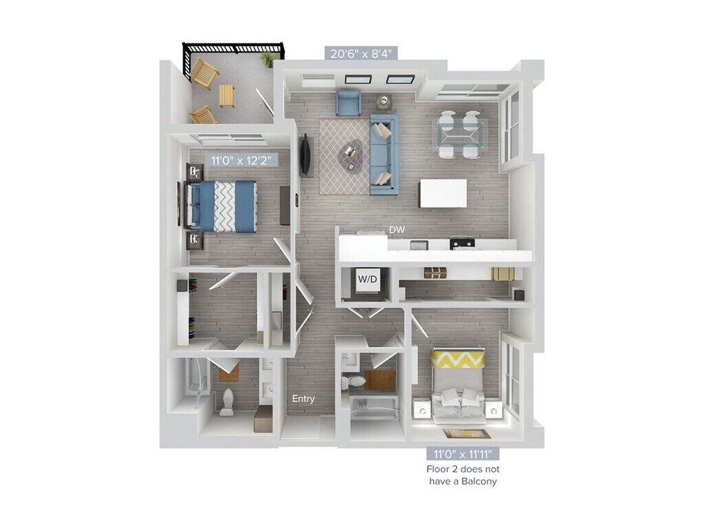 Modelo de apartamento: A1-566SF$3,6301 Dormitorio, 1 Baño, 566 sq ftDisponible November 9, 2025![]()