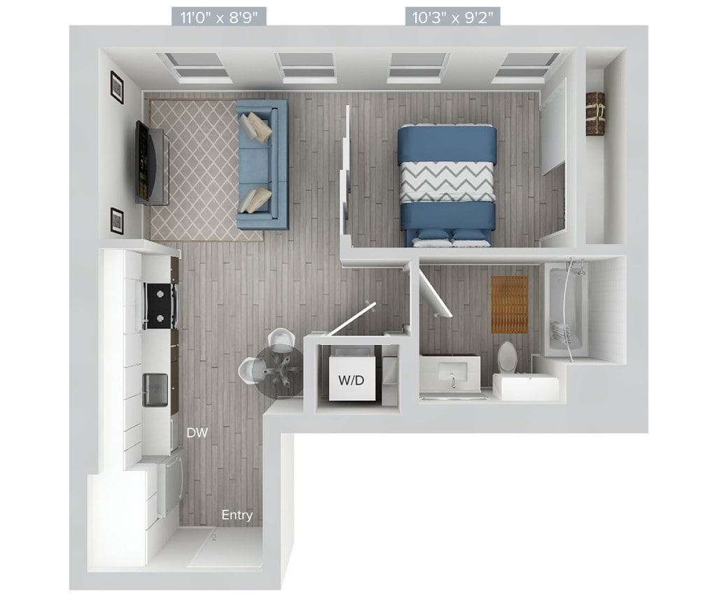 Modelo de apartamento: S13-585SFDesde $3,280Estudio, 1 Baño, 585 sq ftDisponible November 13, 2025![]()