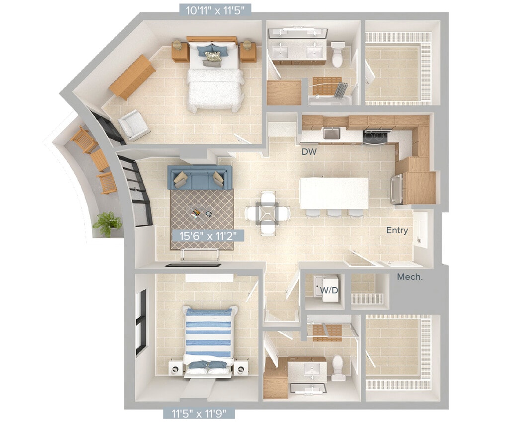 1 Dormitorio, 1 Baño, 886 pies²Disponible AhoraEl más grandeEsta opción tiene las unidades más grandes para este modeloGalería del Modelo
