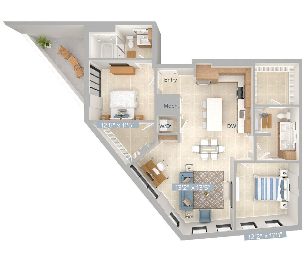 Modelo de apartamento: A3-786$2,2451 Dormitorio, 1 Baño, 786 sq ftDisponible Ahora![]()