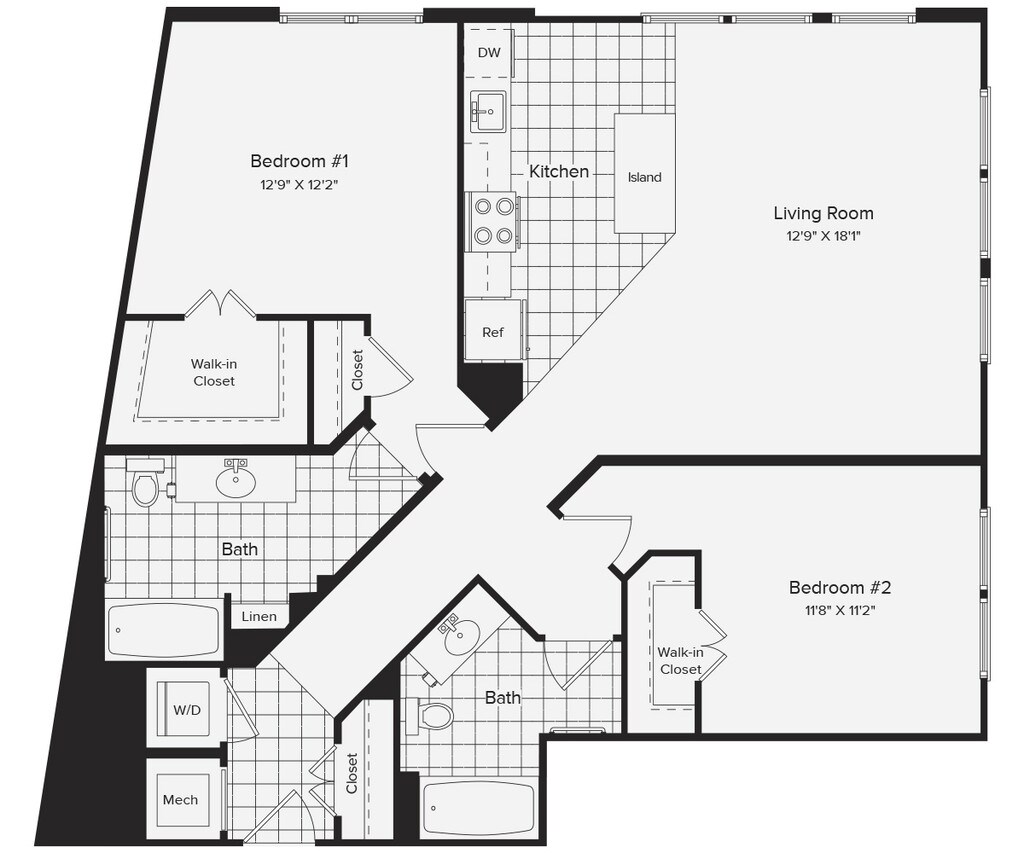 Modelo de apartamento: A5$1,9801 Dormitorio, 1 Baño, 680 sq ftDisponible Ahora![]()
