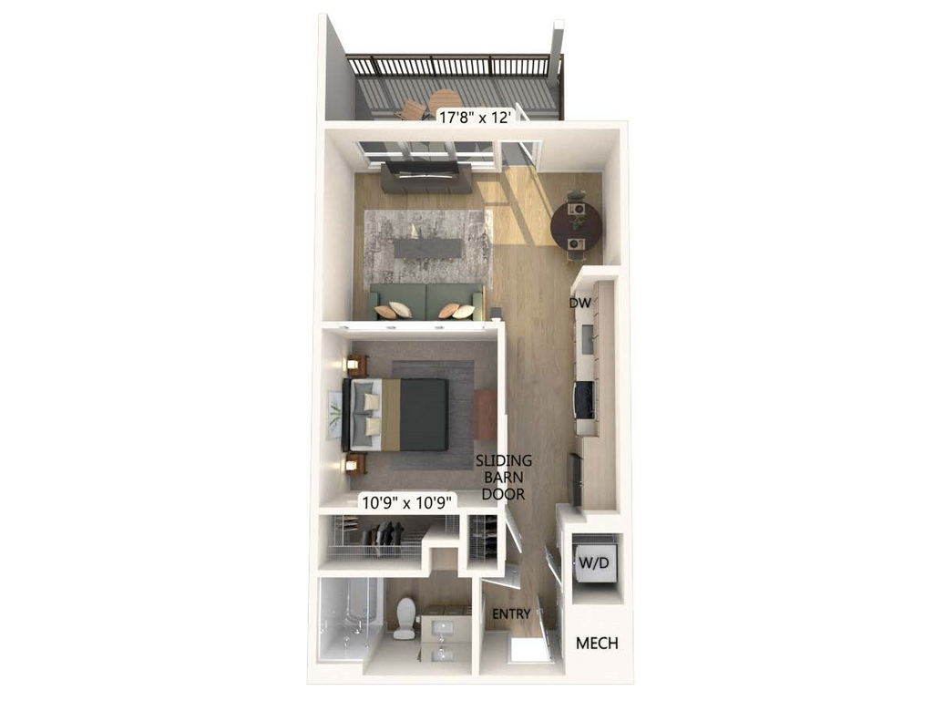 Estudio, 1 Baño, 639 pies²Disponible AhoraGalería del Modelo