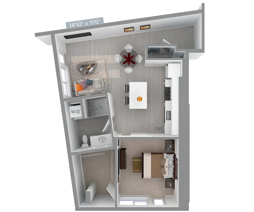 1 Dormitorio, 1 Baño, 745 pies²Precio Mensual TotalDisponible Mar 1Galería del Modelo
