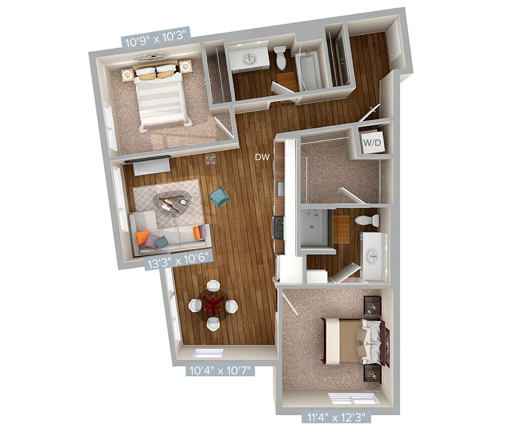 Estudio, 1 Baño, 588 pies²Precio Mensual TotalDisponible Mar 30El más grandeEsta opción tiene las unidades más grandes para este modeloGalería del Modelo