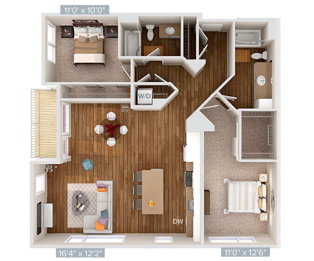 1 Dormitorio, 1 Baño, 745 pies²Disponible AhoraGalería del Modelo