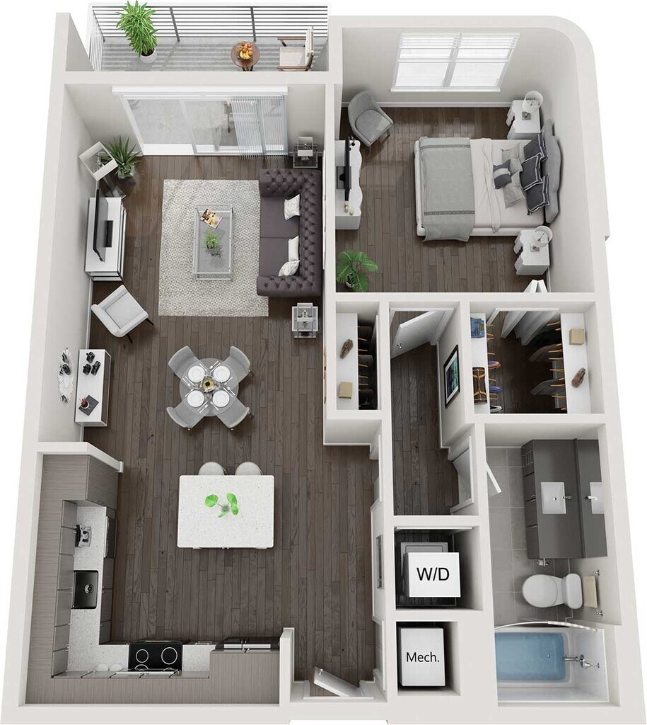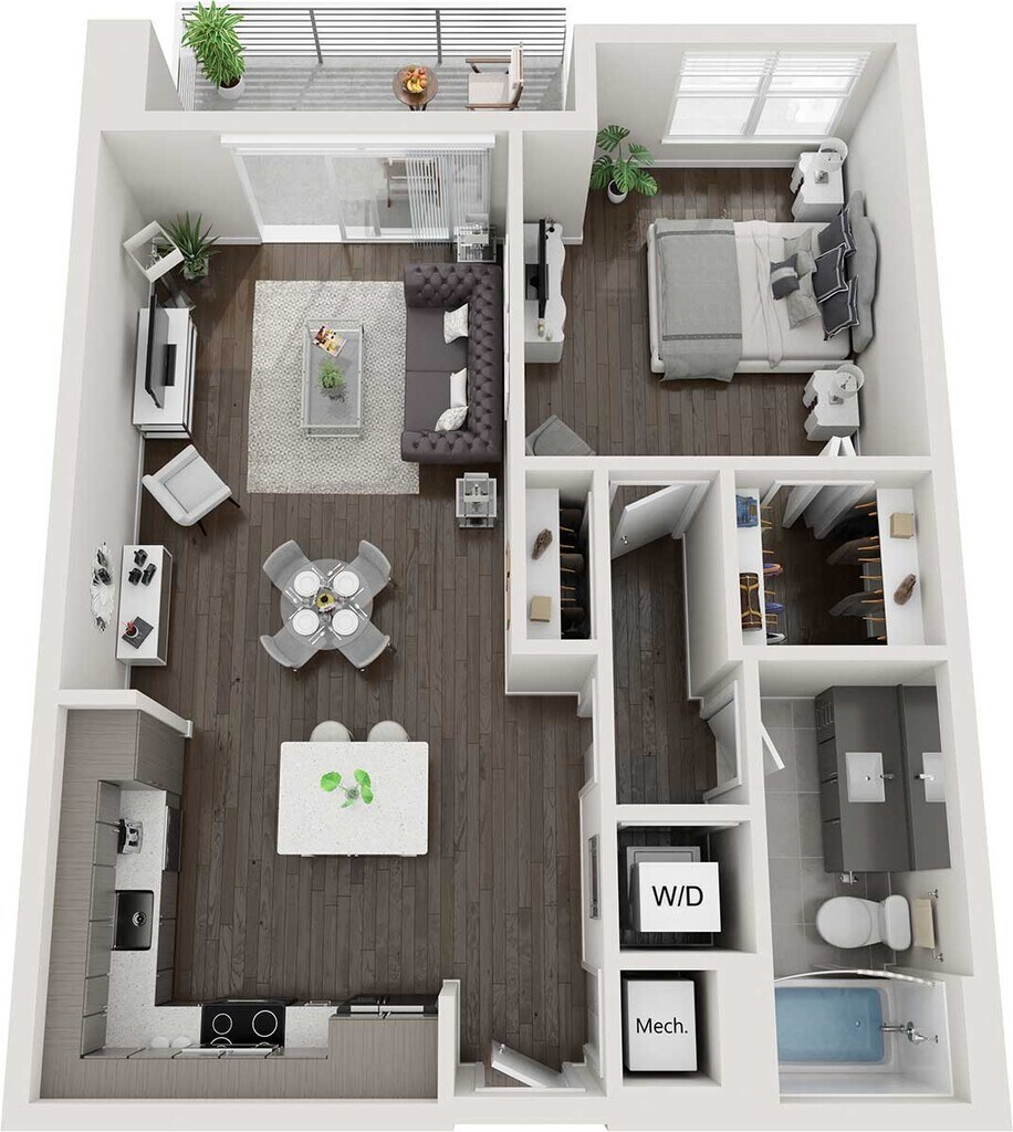 Modelo de apartamento: A1-746Desde $2,5031 Dormitorio, 1 Baño, 764 sq ftDisponible December 8, 2025![]()