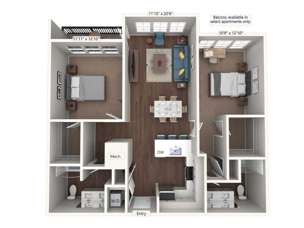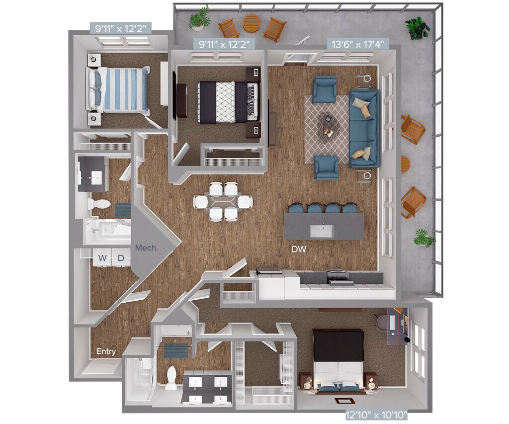 Modelo de apartamento: AM12-D2-647Desde $1,7651 Dormitorio, 1 Baño, 647 sq ftDisponible Ahora![]()