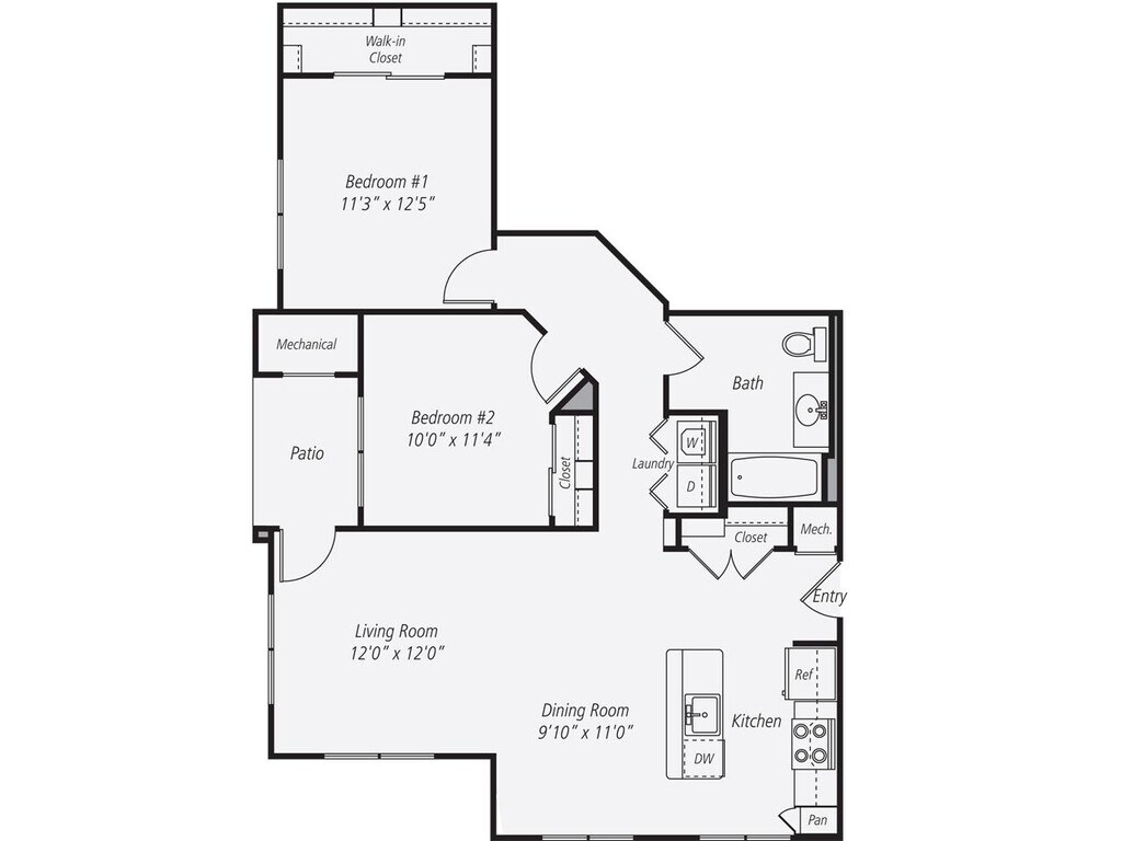 Modelo de apartamento: B3Desde $3,5812 Dormitorios, 2 Baños, 1116 sq ftDisponible Ahora![]()