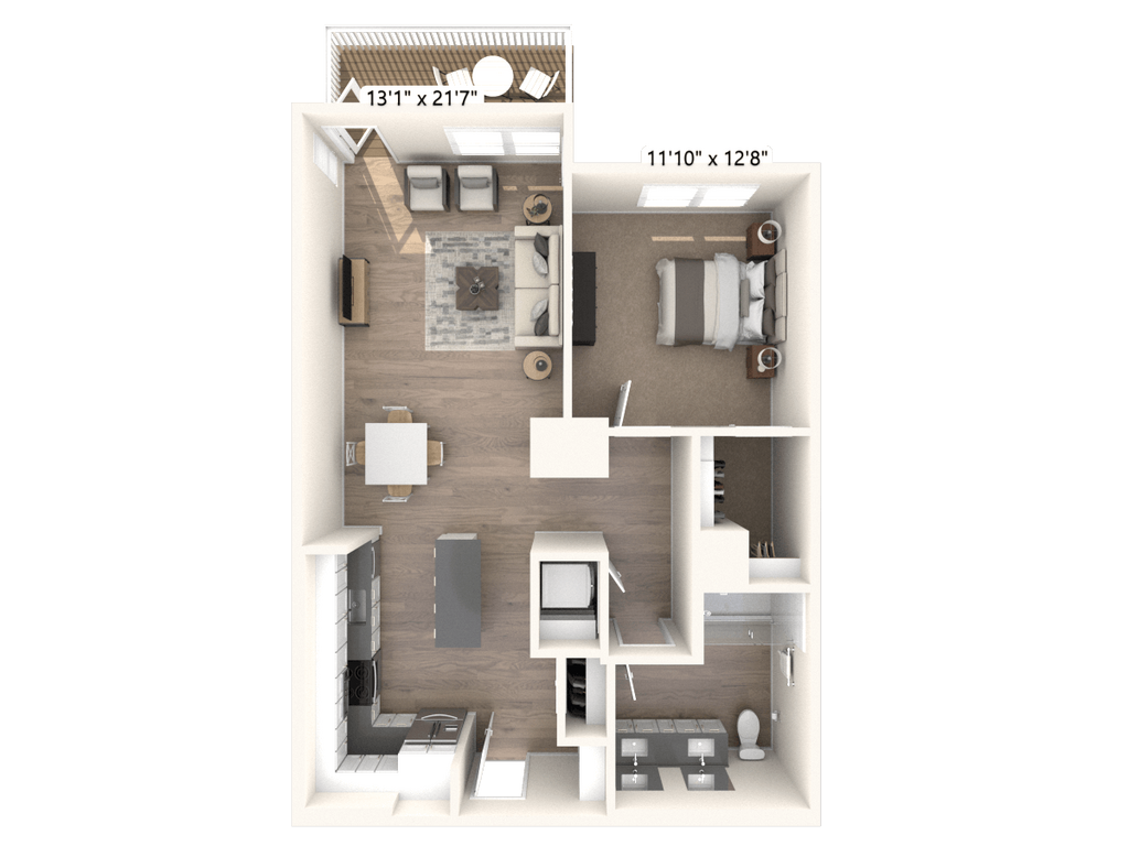 1 Dormitorio, 1 Baño, 1280 pies²Disponible AhoraGalería del Modelo