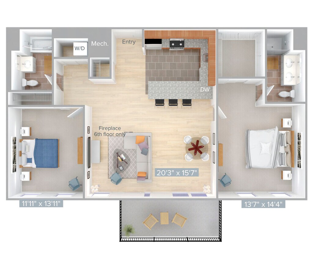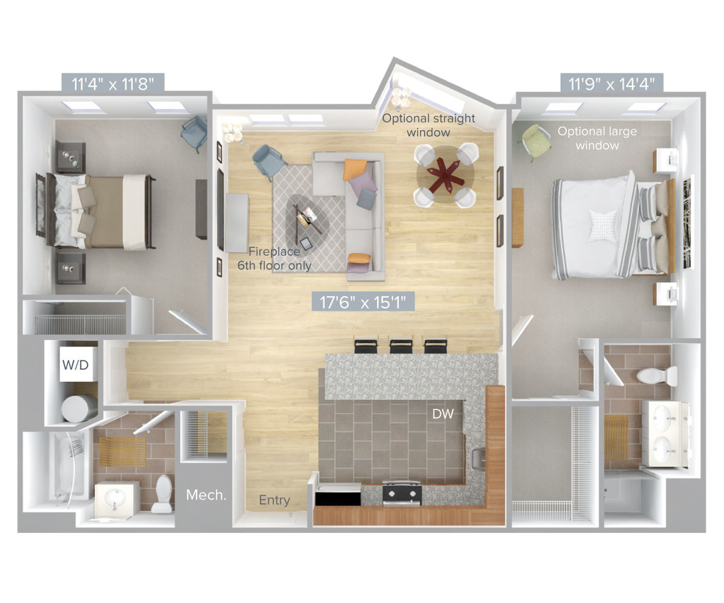 Modelo de apartamento: B6-11902 Dormitorios, 2 Baños, 1190 sq ftDisponible April 13, 2026![]()