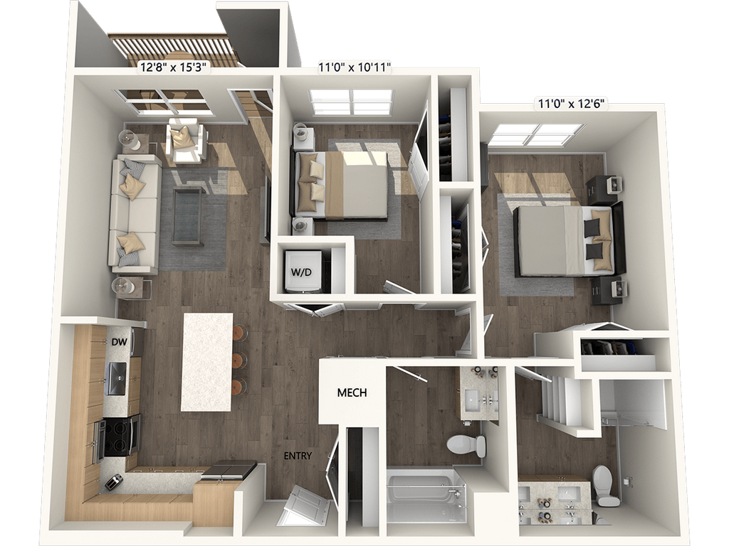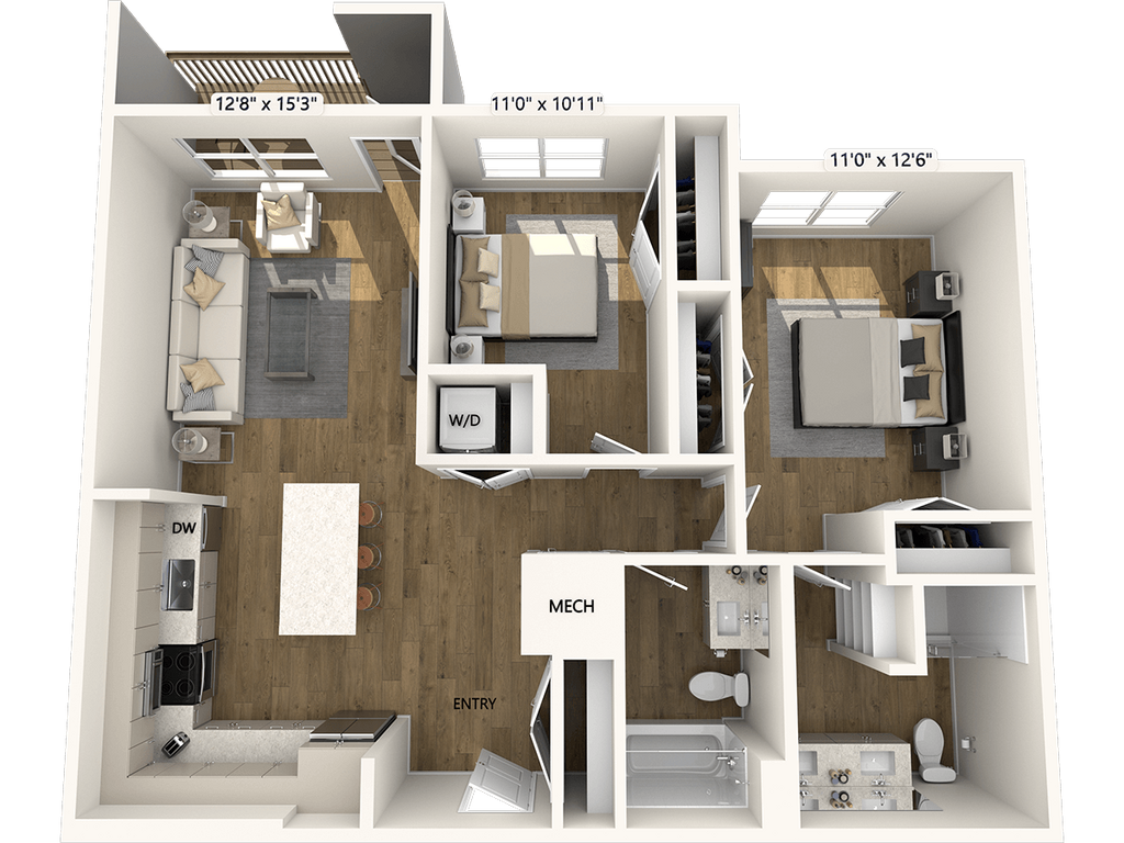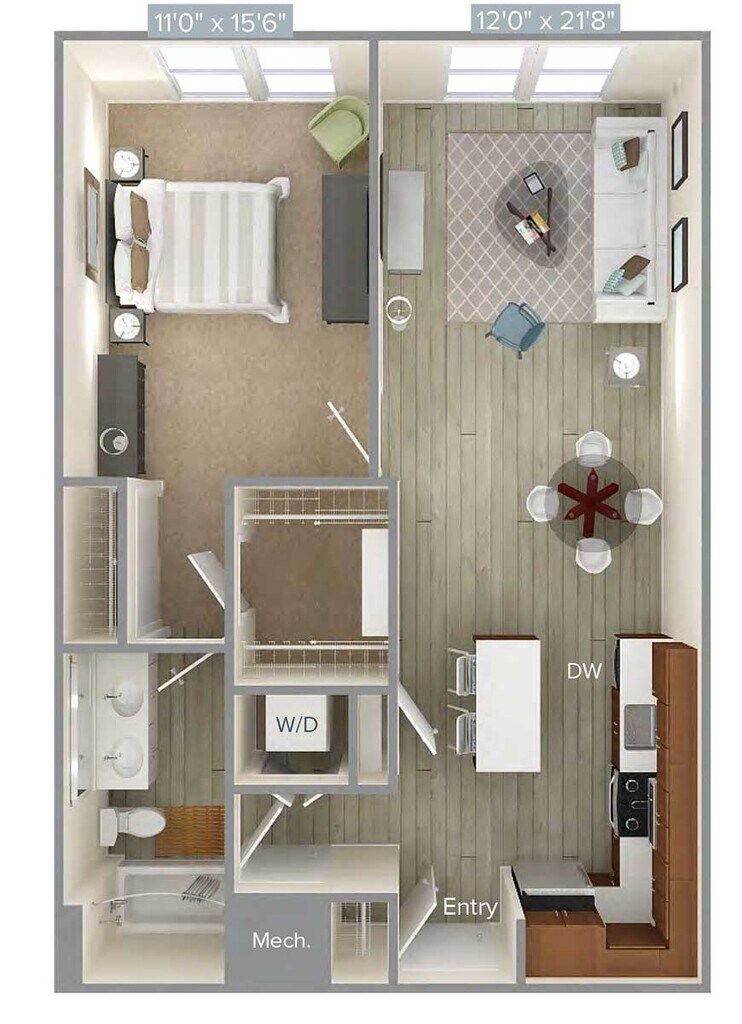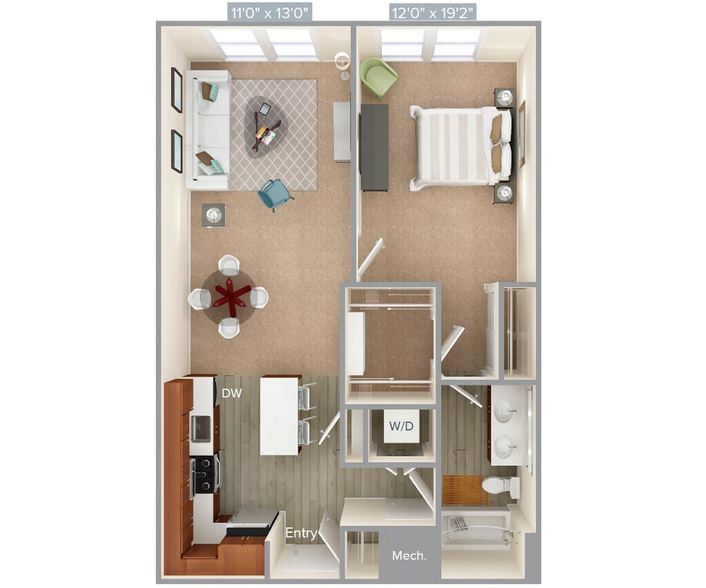 Modelo de apartamento: A1-631sf-FinishIIIDesde $2,0201 Dormitorio, 1 Baño, 631 sq ftDisponible April 9, 2026![]()