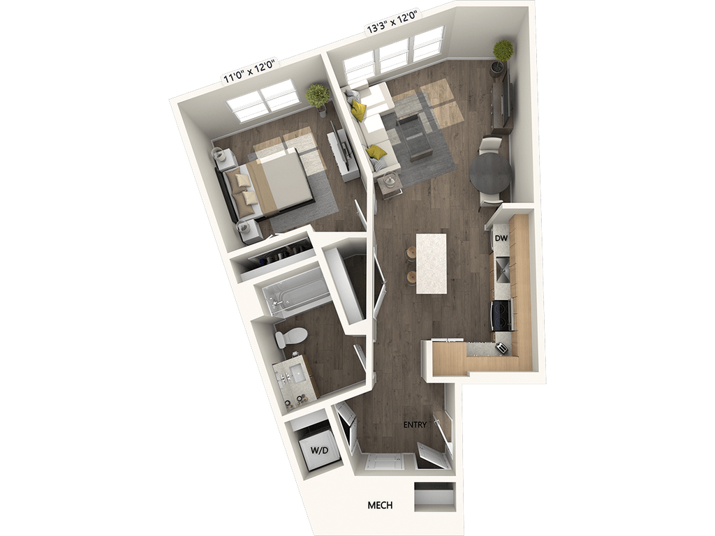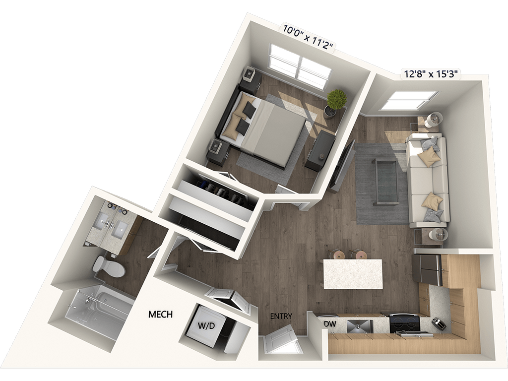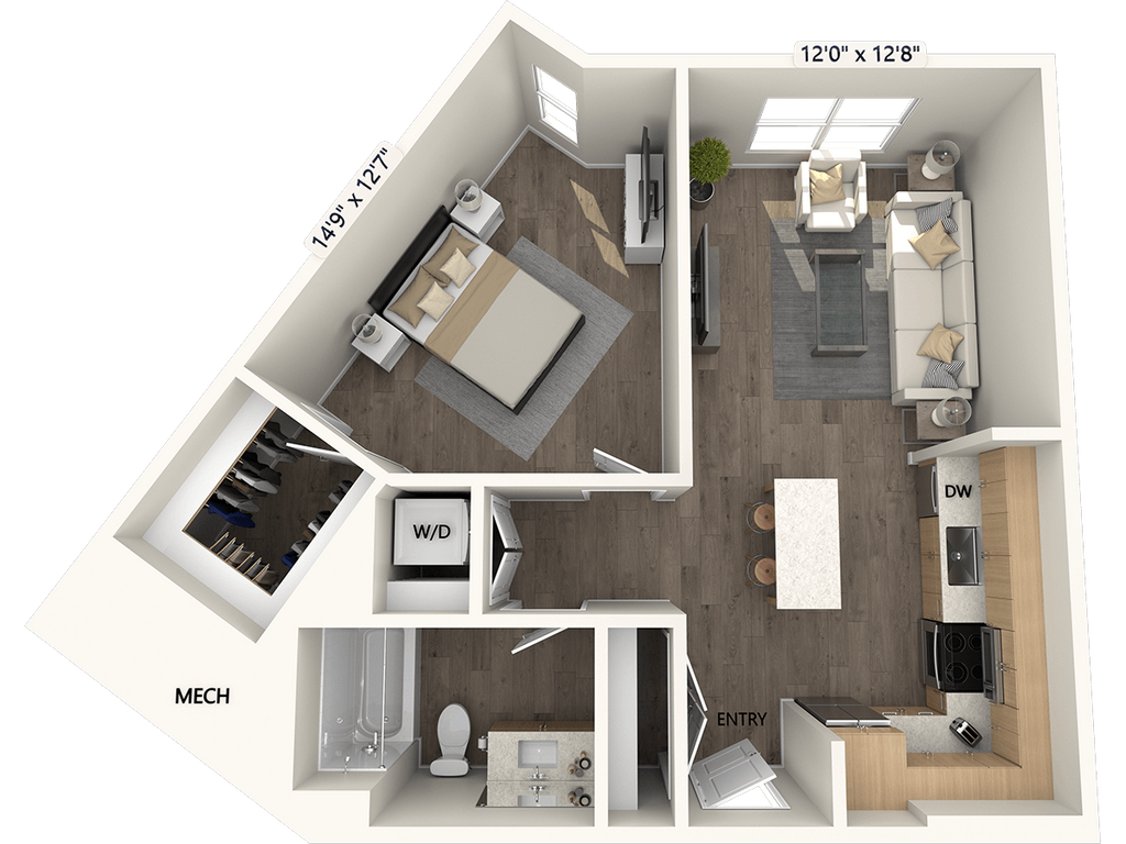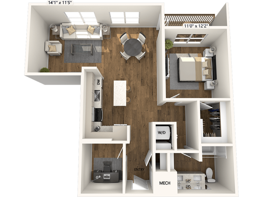 1 Dormitorio, 1 Baño, 631 pies²Disponible AhoraGalería del Modelo