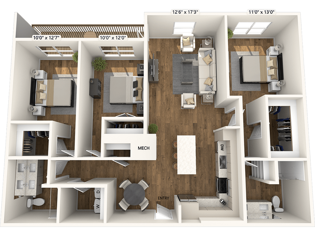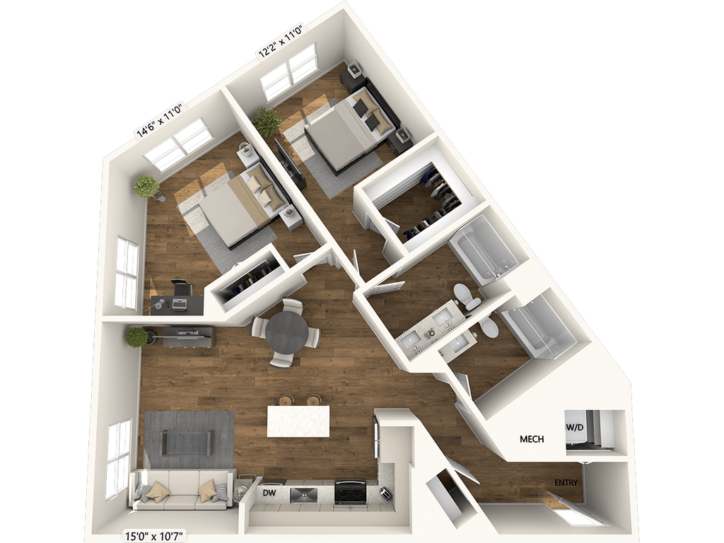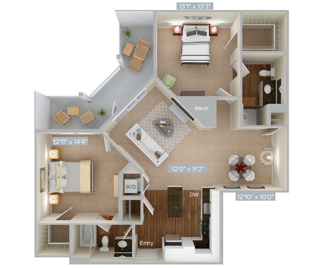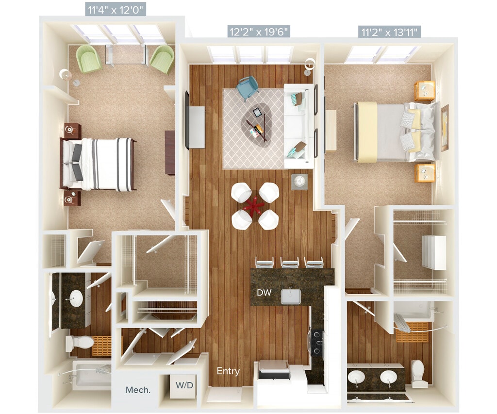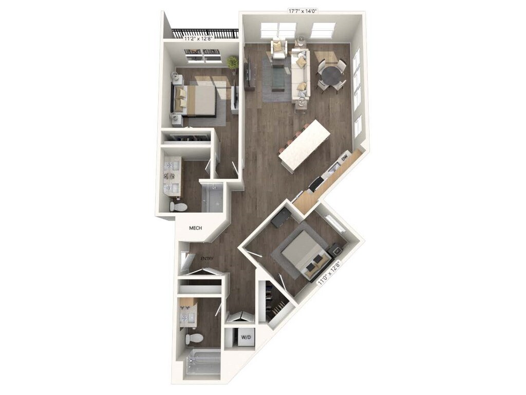 Modelo de apartamento: A1-2-718Desde $1,8101 Dormitorio, 1 Baño, 718 sq ftDisponible Ahora![]()