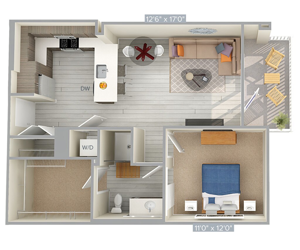 Modelo de apartamento: A4-701Desde $2,8051 Dormitorio, 1 Baño, 701 sq ftDisponible AhoraLos planos son representaciones artísticas. Todas las dimensiones son aproximadas. El producto y las especificaciones reales pueden variar en tamaño o detalle. No todas las características están disponibles en cada vivienda en alquiler. Por favor, consulta con un representante para obtener más detalles.