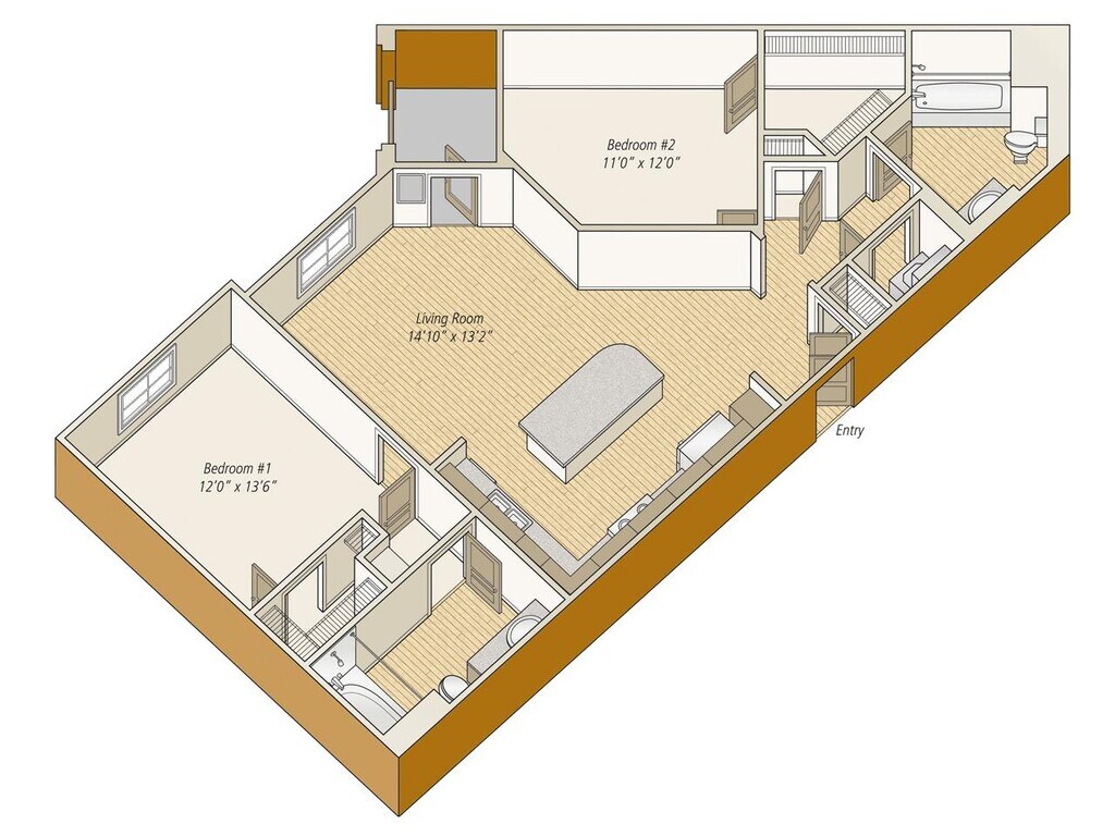 Modelo de apartamento: A12Desde $2,7901 Dormitorio, 1 Baño, 726 sq ftDisponible Ahora![]()