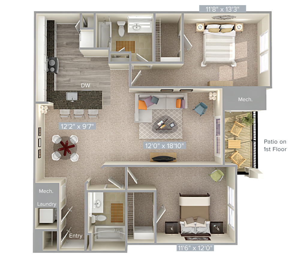 Modelo de apartamento: B1-1-1211sqDesde $2,2552 Dormitorios, 2 Baños, 1211 sq ftDisponible January 24, 2026![]()