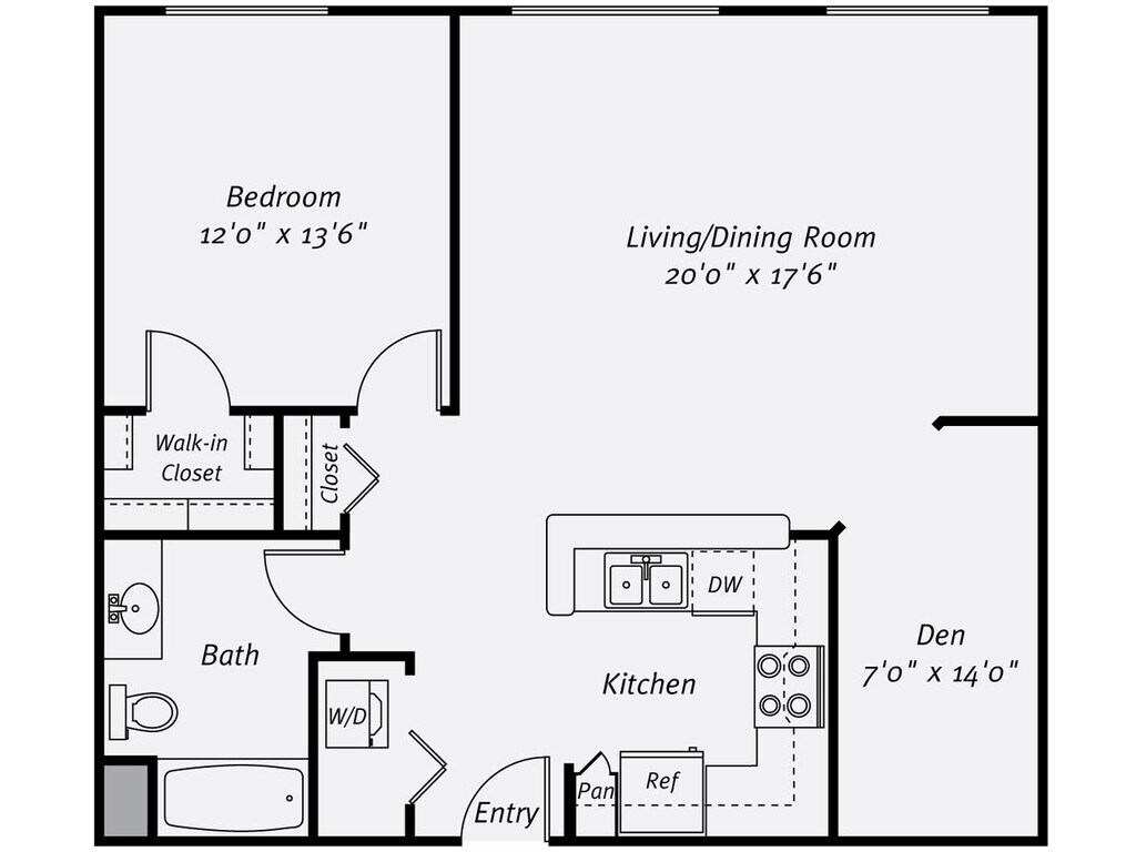 1 Dormitorio, 1 Baño, 750 pies²Disponible AhoraGalería del Modelo