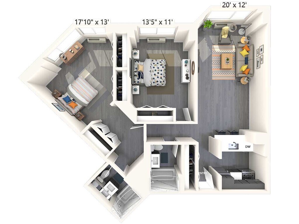 Modelo de apartamento: A1-667-J-Classic1 Dormitorio, 1 Baño, 666 sq ftDisponible pronto![]()