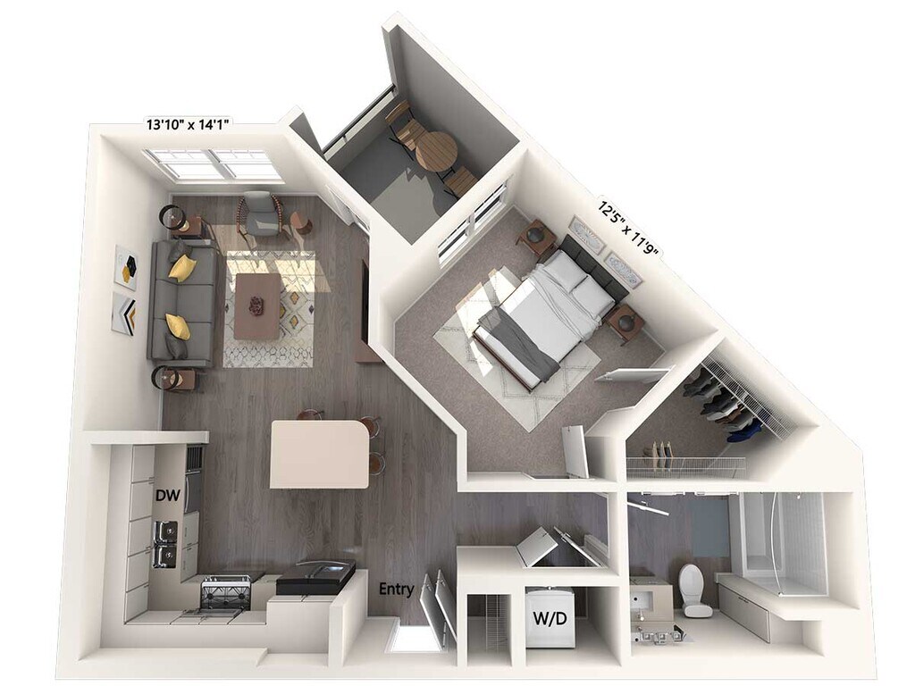 1 Dormitorio, 1 Baño, 797 pies²Disponible Nov 2Galería del Modelo