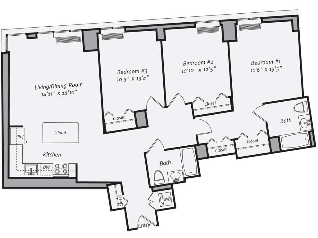 C1 - Plano Unidad de apartamento: 1701Modelo de apartamento: C13 Dormitorios, 2 Baños, 1347 sq ftDisponible June 9, 2026Plano: C1
