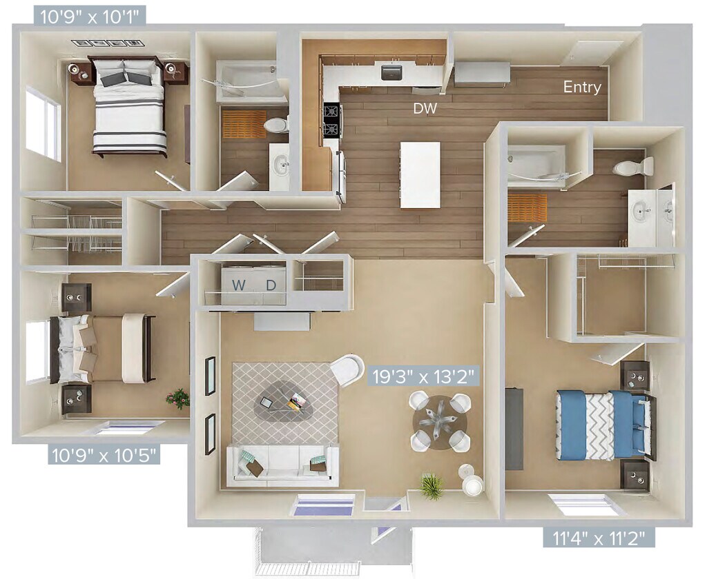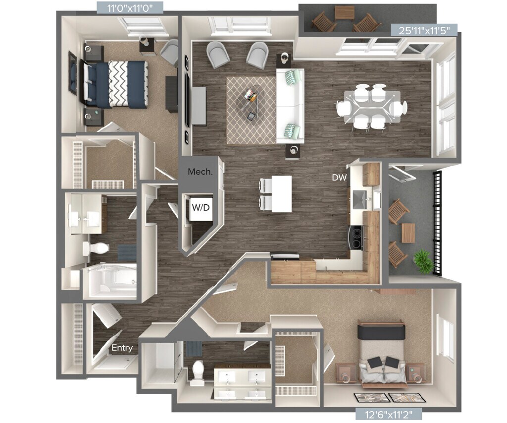 Modelo de apartamento: A8-762$2,2501 Dormitorio, 1 Baño, 763 sq ftDisponible November 21, 2025![]()