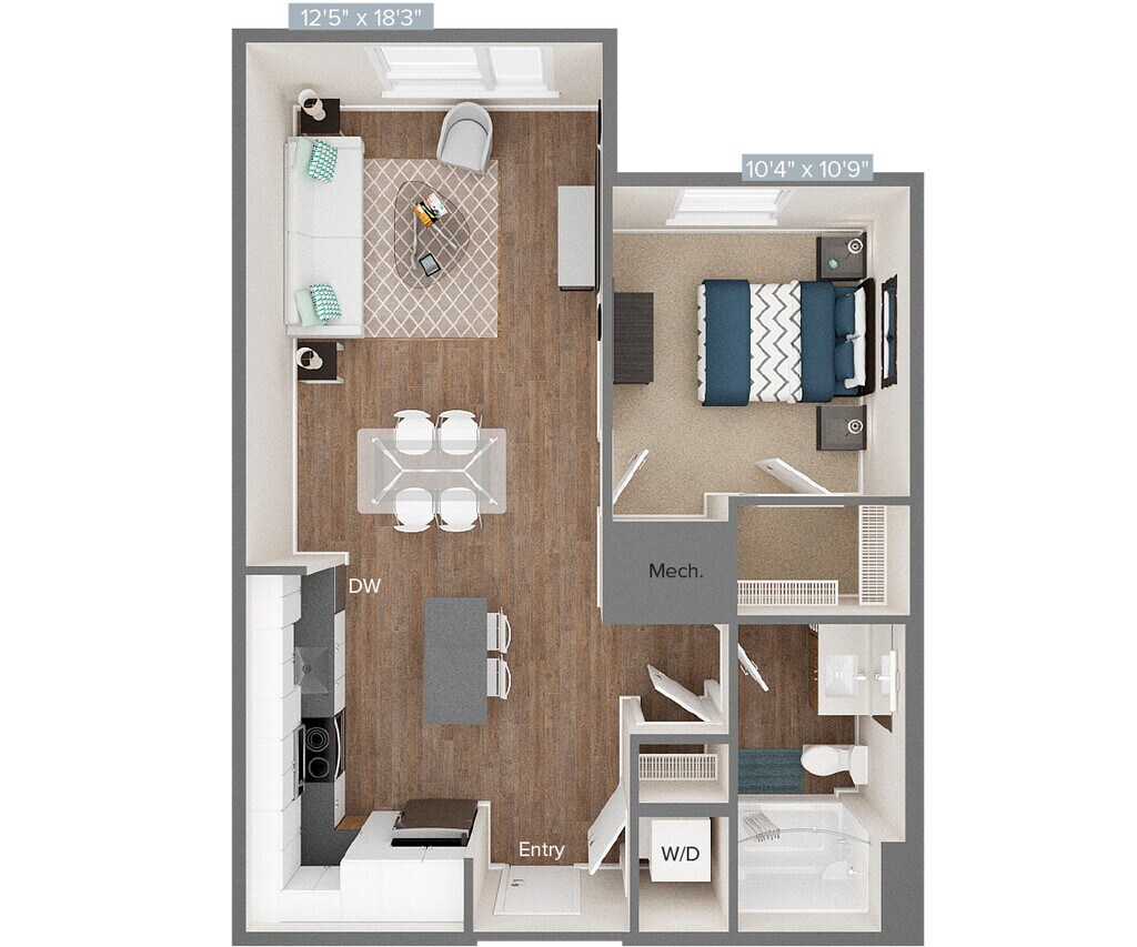 Modelo de apartamento: A4-763-BDesde $2,1351 Dormitorio, 1 Baño, 733-753 sq ftDisponible November 21, 2025![]()