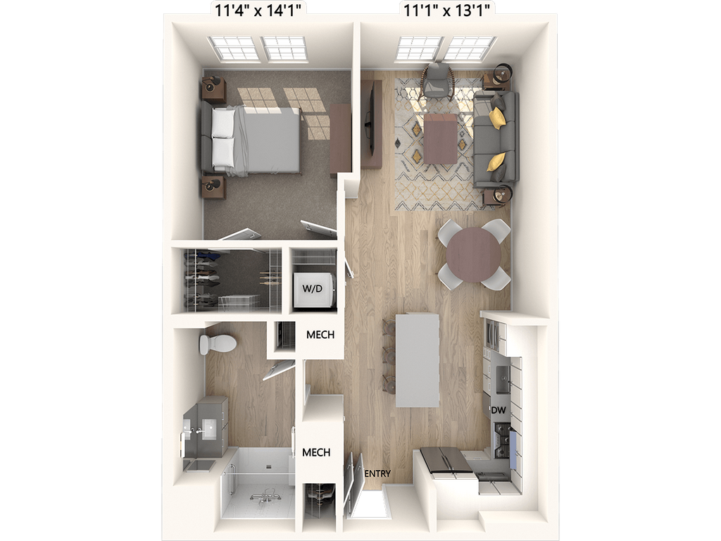 A3D - Plano 1 Unidad de apartamento: 080-307Modelo de apartamento: A3D$2,8851 Dormitorio, 1 Baño, 993 sq ftDisponible January 1, 2026AM14