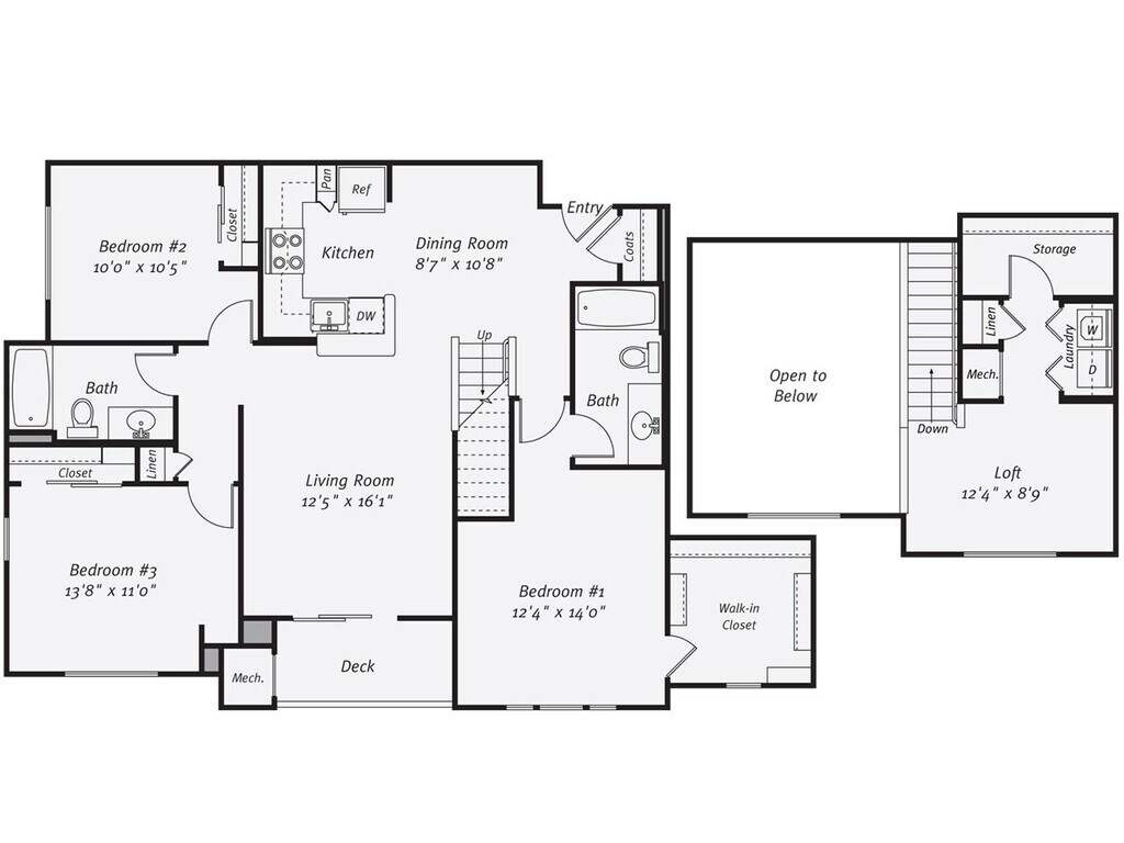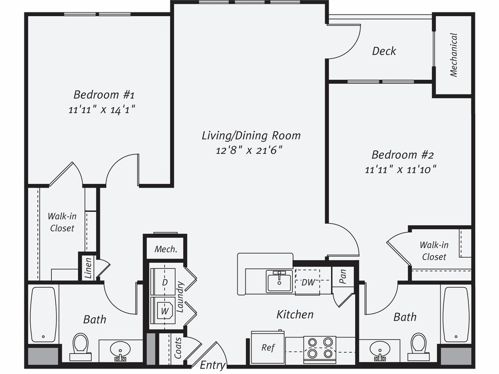 Modelo de apartamento: B62 Dormitorios, 2 Baños, 1357 sq ftDisponible Ahora![]()