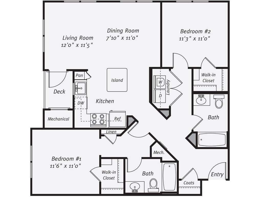 Modelo de apartamento: B22 Dormitorios, 2 Baños, 1102 sq ftDisponible Ahora![]()